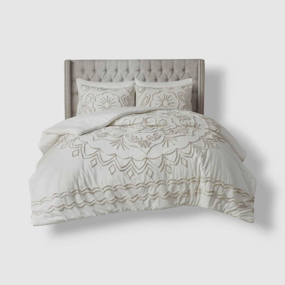 Madison Park White/Beige Violette 3-Piece Tufted Comforter Set, Full/Queen Size Description Full/Queen comforter dimensions- 90" L x 90" W Standard shams dimensions- 20" L x 26 " W Set includes 1 comforter, 2 shams Prevent from allergies polyester filling in the comforter Comforter and Sham- Cotton Chenille with Tufted Technique, Comforter- Polyester Filling Machine Washable Imported About Us We sell only 100% authentic clothing from new with tags to gently used. We have a 100% authentic or money back guarantee on every item we sell. Items are listed daily so make sure to put us on your favorite! We have been in business for over 10 years selling tens of thousands of designer items. We strive to meet your designer needs at a quality price! Payment Shipping Returns Payment accepted via paypal, credit/debit card. Shipping is usually within 24 hours of purchase (M-F). Super fast service. Tracked delivery. 100% satisfaction guaranteed. Please review our eBay return policy for more details.