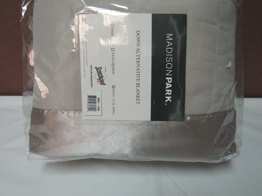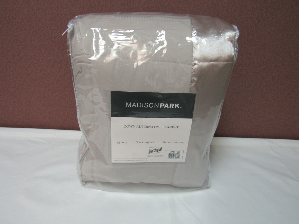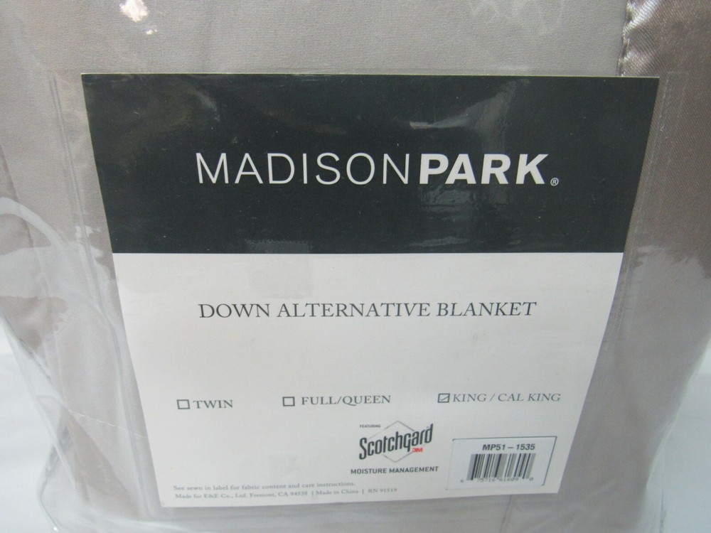Madison Park Windom King Microfiber Down Alternative Grey King Blanket T4101627 The Windom down alternative blanket from Madison Park features 3M Scotchgard moisture management treatment to help keep you cooler and drier, while the box quilting provides an even distribution of warmth, making this the choice for ultimate comfort in your room. Dimensions: 108" x 90" King/ California King Grey Ultimate comfort Satin trim Fabric - Polyester, Fill - Polyester Machine washable Imported