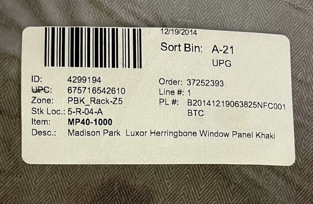 -NEW Madison Park Window Panel Curtain Luxor Herringbone 1 Panel 50”Wx84”H. Package has some wear. *FREE SHIPPING