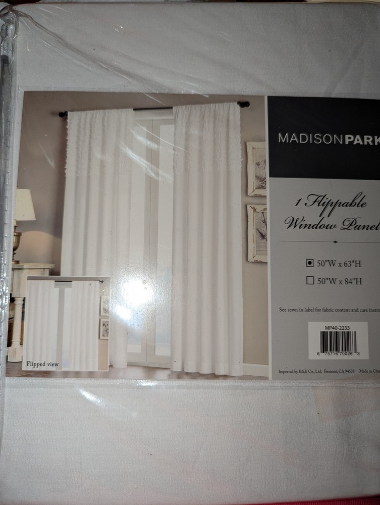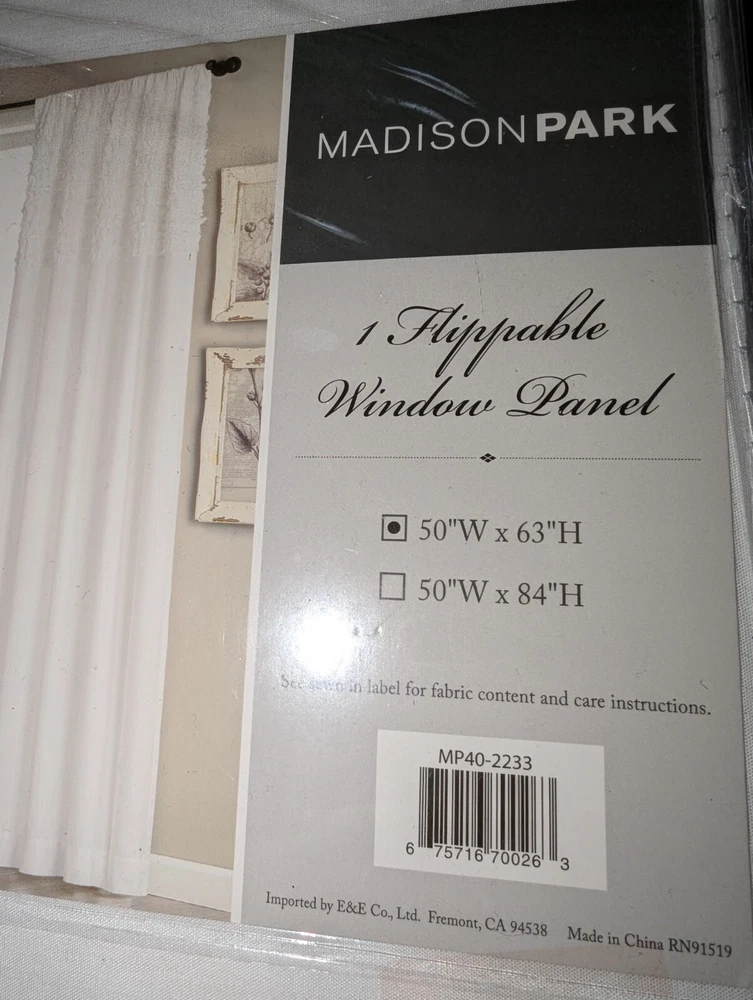Madison Park Bessie Cotton 50" x 63" Horizontal Ruffle one Window Panel White...