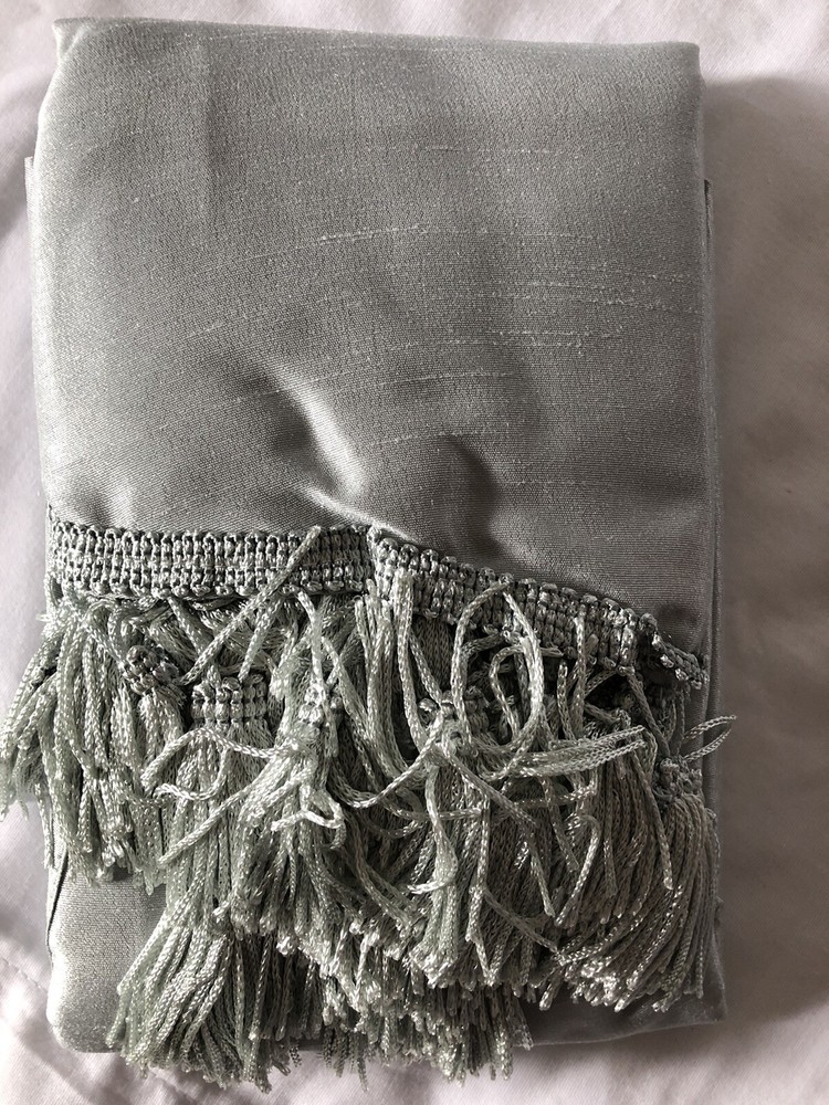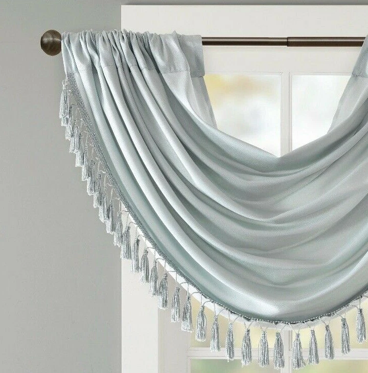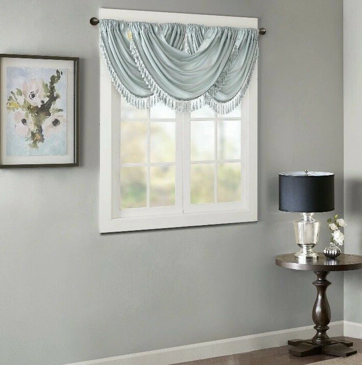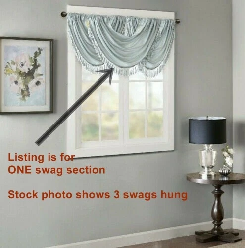 new in distressed packaging; black marks through name and barcode MADISON PARK "ELENA" WINDOW VALANCE faux silk 38" W x 46" L color: green (in my opinion, its a light sage-like green) listing is for one valance stock photo shows 3 swags hung - listing is for one (see last photo) ********************************* THANKS FOR LOOKING! GOD BLESS!!
