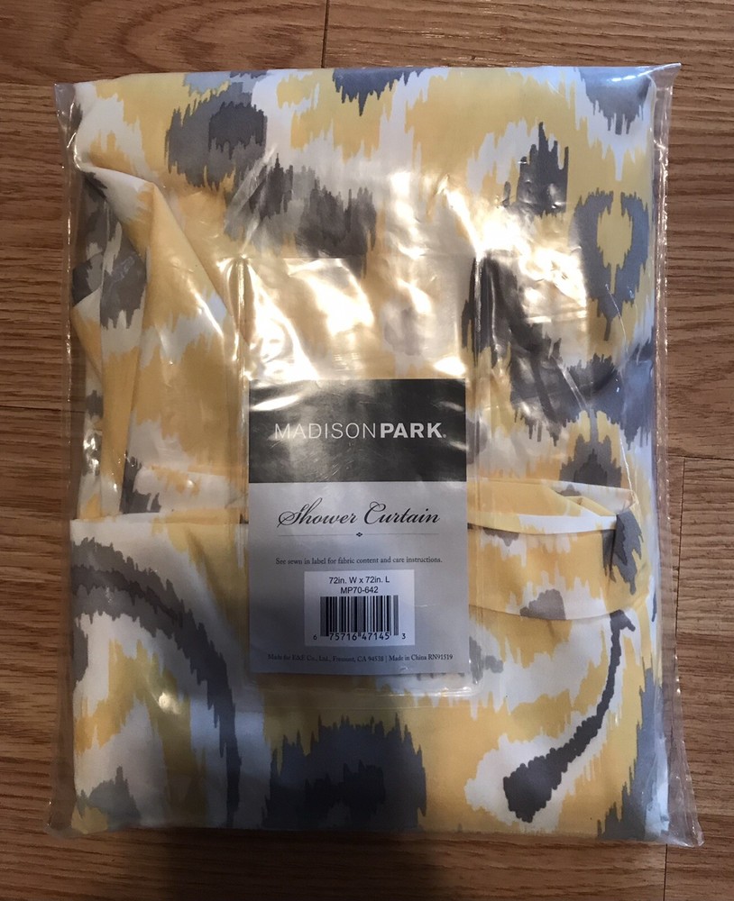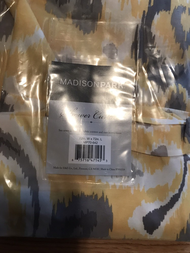 Madison Park Yellow Brown Abstract Printed Cotton Shower Curtain 72x72”.