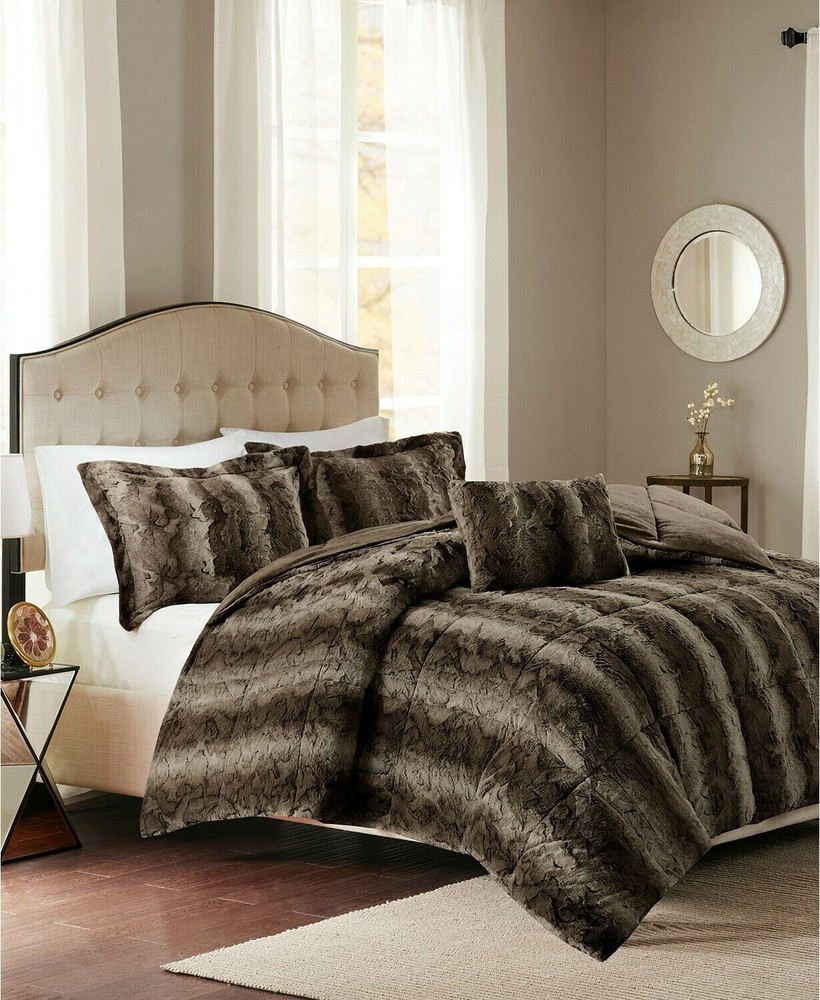 Color: Chocolate Size: Full / Queen Create your ideal bedroom decor with the Zuri reversible comforter set from Madison Park, featuring a luxuriously soft faux fur. Two shams and a decorative pillow complete the set Set includes: comforter (90" x 90"), two standard shams (20" x 26") and one decorative pillow (14" x 20") Reversible Fabric: polyester 260 GSM, reverses to 180 GSM; comforter/pillow fill: polyester Machine washable Imported