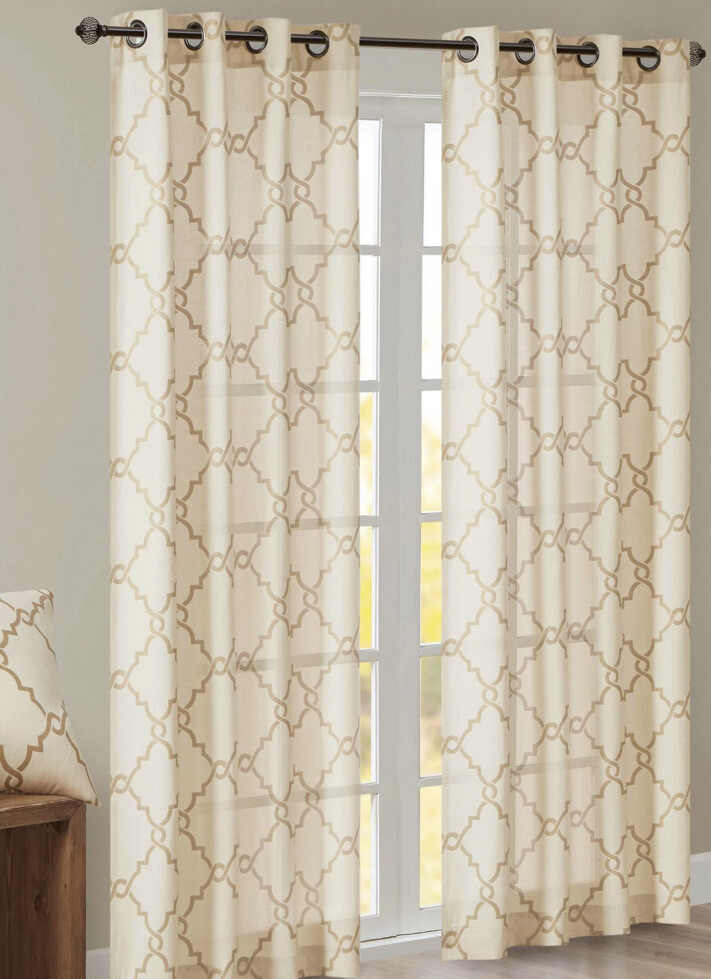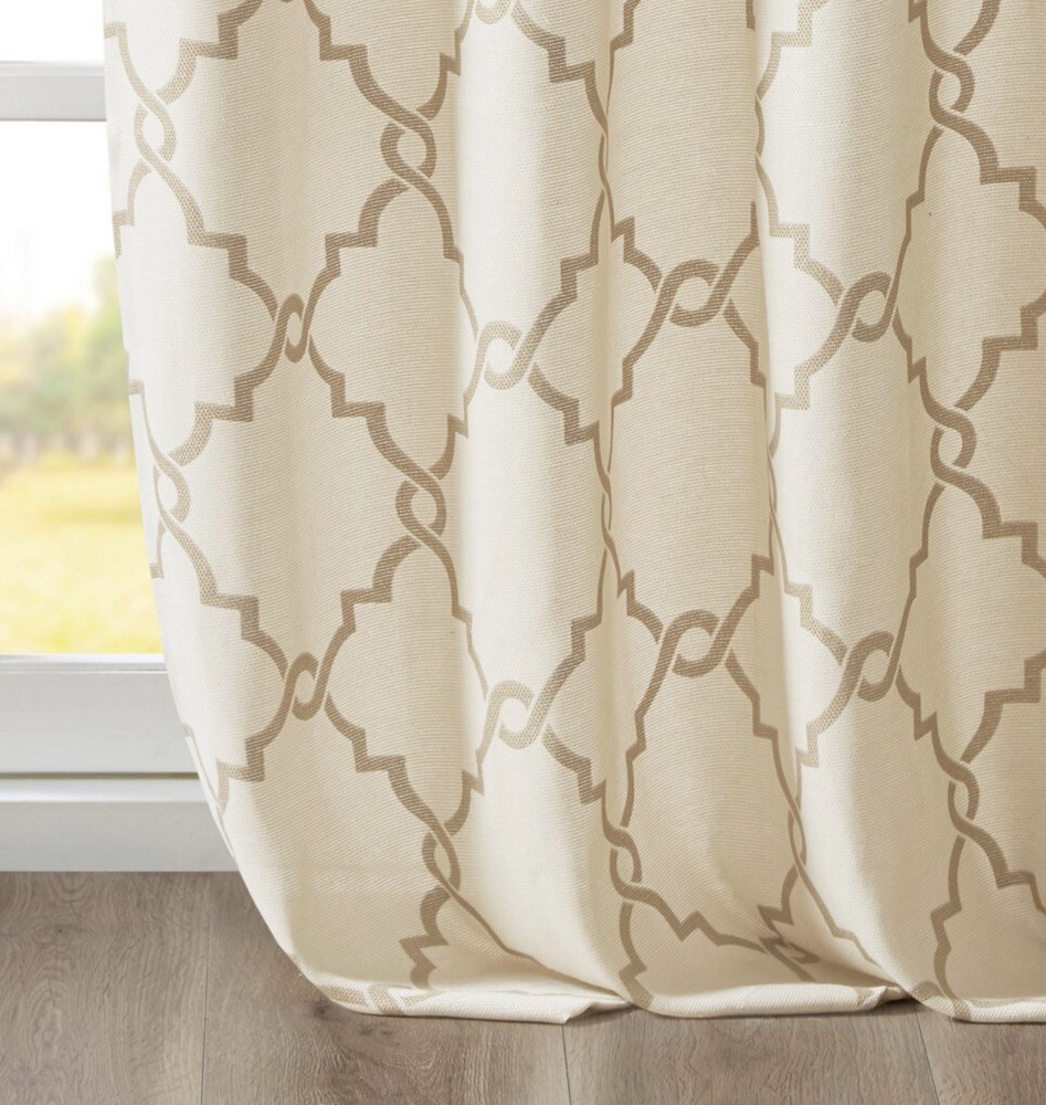 7✅ Madisonpark Sereno Fretwork Print Light Filtering, Beige/gold 50x84”‼️one Pane. Condition is New. any offer please let me know?