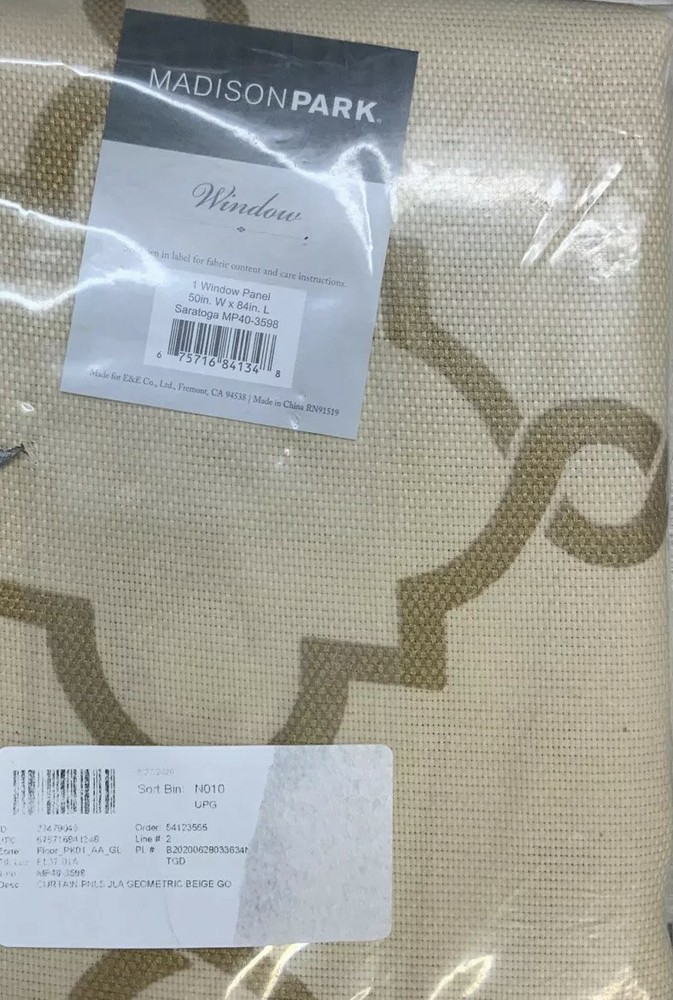 7✅ Madisonpark Sereno Fretwork Print Light Filtering, Beige/gold 50x84”‼️one Pane. Condition is New. any offer please let me know?...