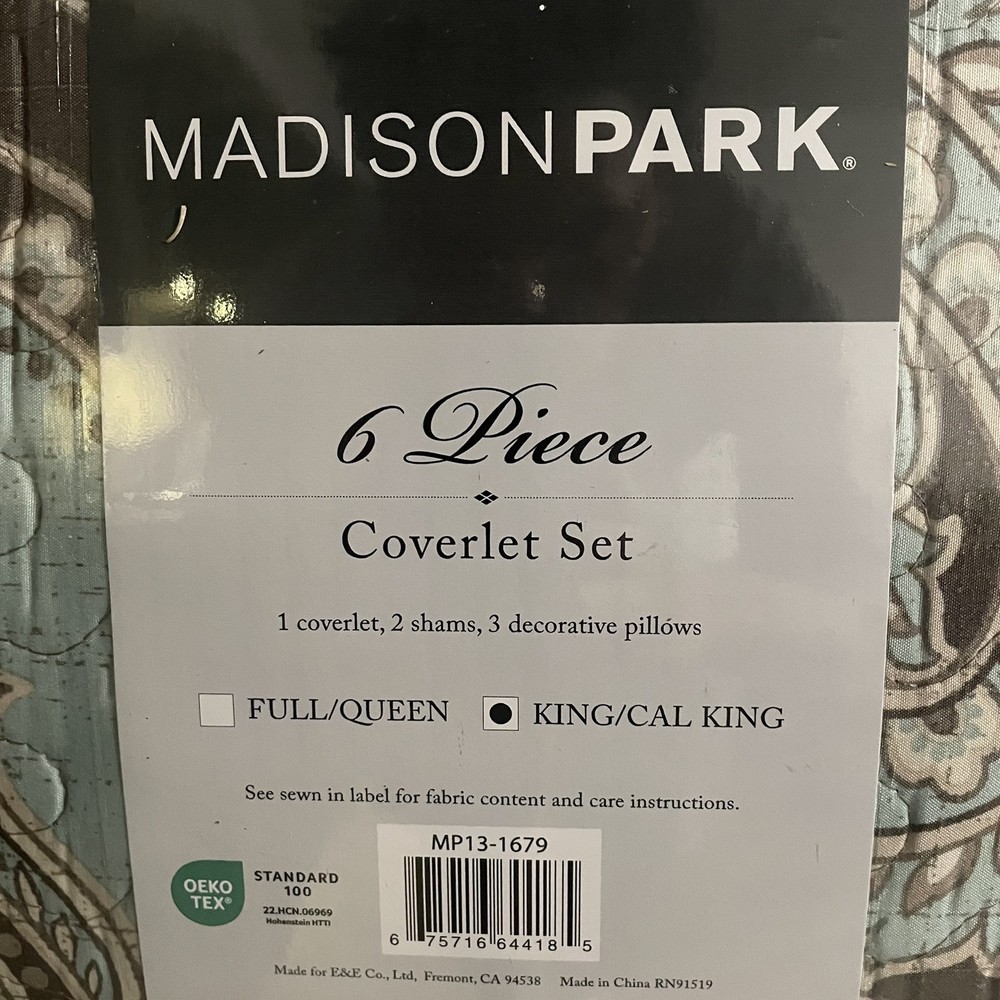 Madisonpark Coverlet 6 Piece bedding comforter set king size. Condition is New with tags. Shipped with USPS Ground Advantage.