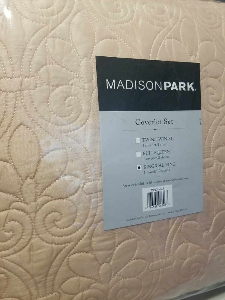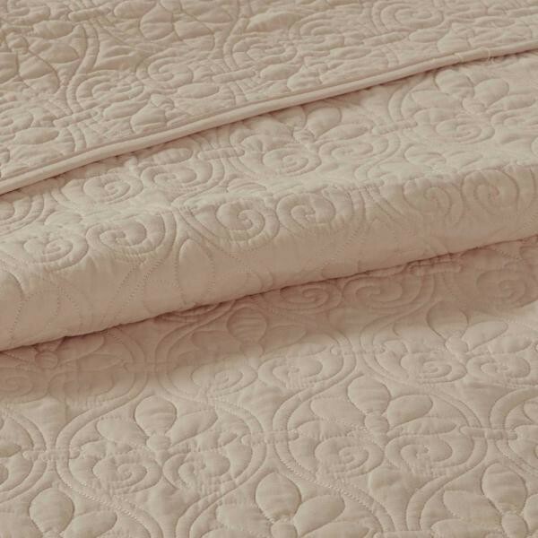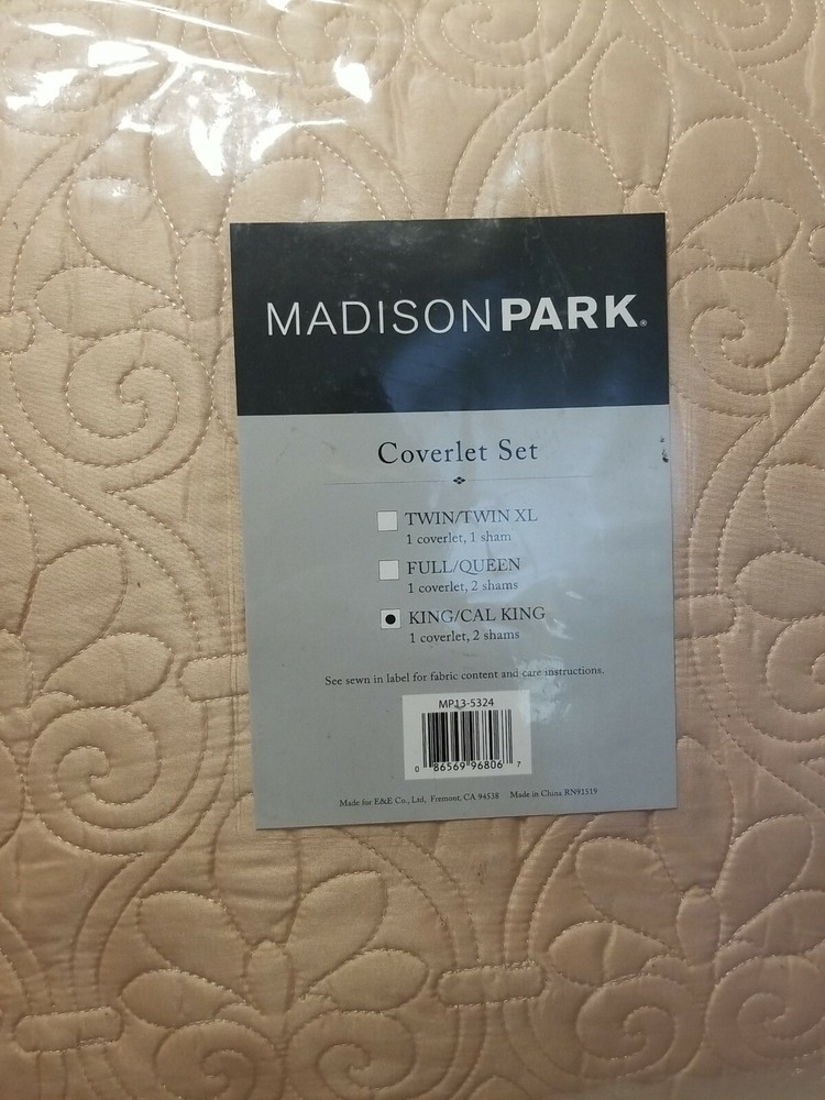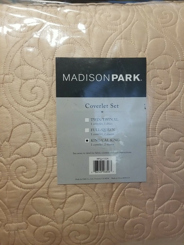 Mansfield 3-Piece Blush King/Cal King Coverlet Set. Madison Park Mansfield Reversible Coverlet Set is the perfect coverlet to use as a layering piece or an alternative to your comforter for a new solid look. The classic stitch pattern pairs easily with your existing decor and will sure to add a new decorative element to your bedroom. The face and the reverse of the coverlet are a super soft brushed fabric. King/California king set includes:1 coverlet:104 in. x 94 in. 2 king shams:20 in. x 36 in. (2) Model#: MP13-5324