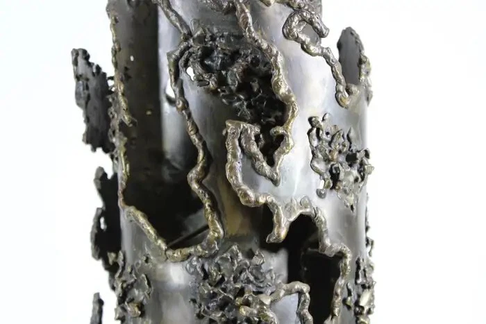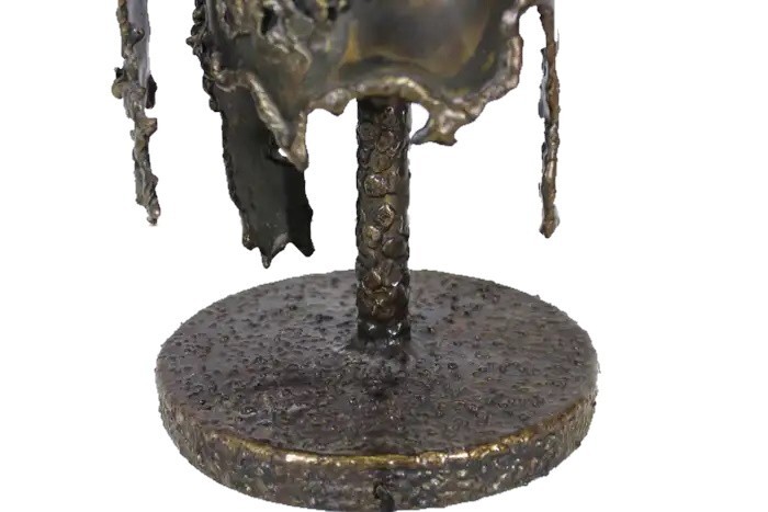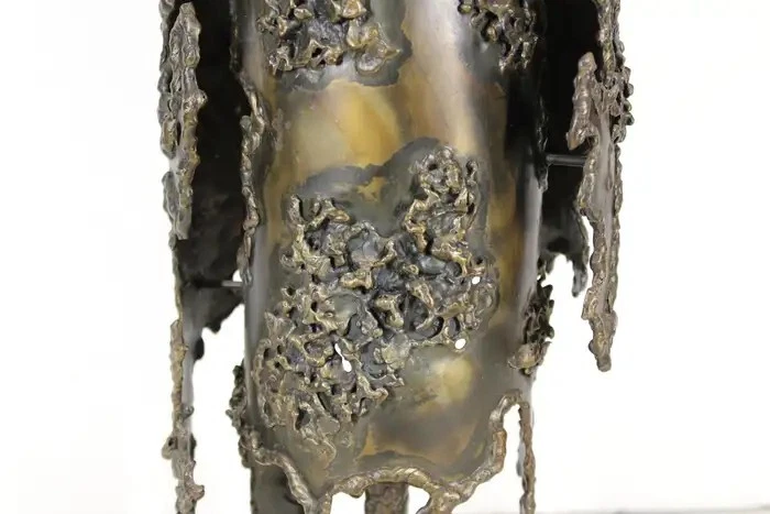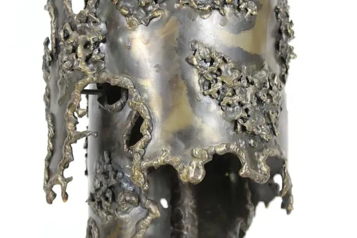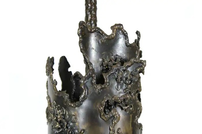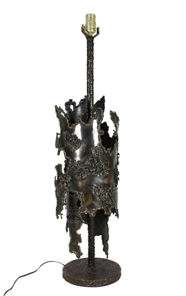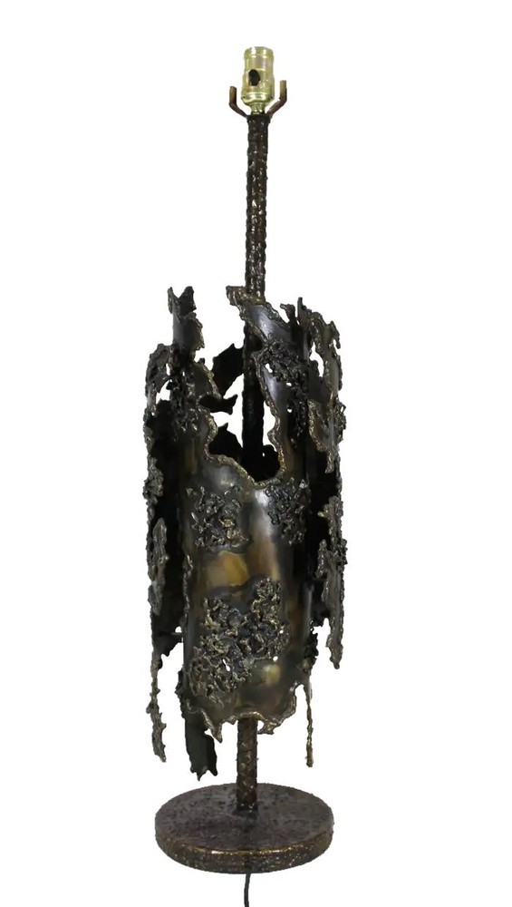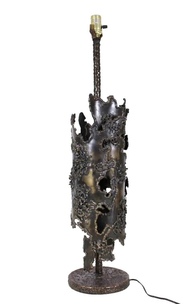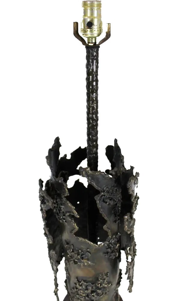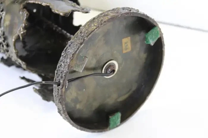 Early Italian Brutalism Marcello Fantoni Table Lamp Wrought Bronze & Iron Circa 1970s DIMENSIONS Height: 31.5 in (80.01 cm) Diameter: 8.25 in (20.96 cm) MARKINGS Located on the lamp's base is the distinctive "Fantoni Firenze Italy" maker's mark. ABOUT This exquisite table lamp exemplifies the bold aesthetic of Italian early Brutalism, crafted by the renowned artist Marcello Fantoni during the dynamic artistic period of the 1970s. Fantoni, celebrated for his innovative approach to ceramics and metalwork, created this striking piece using a combination of wrought bronze and iron. The lamp's design showcases a harmonious blend of organic and industrial elements, with its robust form and intricate detailing capturing the essence of Brutalist design philosophy. The lamp is not only a functional lighting fixture but also a sculptural work of art, characterized by its substantial weight and impressive craftsmanship. Every aspect of its construction reflects Fantoni's mastery, from the meticulously textured surfaces to the skillfully integrated materials that lend it a sense of timeless solidity. Located on the lamp's base is the distinctive "Fantoni Firenze Italy" maker's mark, a testament to its authenticity and the artisanal tradition of Florence, where Fantoni established his renowned studio. This hallmark adds provenance and historical significance to the piece, connecting it directly to the celebrated artist's legacy. Despite its age, this lamp remains in remarkable vintage condition, retaining a desirable patina that enhances its aesthetic appeal. The patina, acquired through decades of careful use and maintenance, imbues the lamp with a sense of history and character, making it a cherished addition to any discerning collectors or enthusiast's home. The lamp's design and condition make it not only a functional lighting solution but also a captivating conversation piece that enriches any interior space. Whether placed on a desk, a side table, or as a focal point in a curated collection, this Marcello Fantoni table lamp stands as a testament to the enduring allure of mid-century Italian design and craftsmanship. Its presence is a nod to an era of artistic exploration and innovation, where form and function converged to create objects of enduring beauty and cultural significance. MARCELLO FANTONI Few personalities in the realm of postwar fine art sculpture have been as influential as that of Marcello Fantoni. Defying his humble beginnings with simple ceramics, Fantoni was able to push the practice and the medium into the sphere of the serious with his mastery of technique and his wholly unique abstract style. In dialog with the major artistic movements of his time, Fantoni raised the profile of Italian ceramics while laying the groundwork for its continued prestige. Born in Florence in 1915, Fantoni started on the artistic path at an extremely young age. In 1927 at age 12, he entered the Instituto d’Arte Porta Romana. While there he studied under the giants of Italian sculpture of the time, including Carlo Guerrini, Libero Andreotti, and Bruno Innocenti, with Gianni Vagnetti as his drawing instructor. Graduating in 1934 as a “maestro,” Fantoni set out on his own as a professional ceramicist. In 1936, having served for a while as artistic director of a ceramics factory in Perugia, Fantoni established his own Fantoni Ceramic Studio in his home city. He debuted the output of his new studio in 1937 at the Florentine Arts and Crafts Exhibit to much acclaim, earning himself a reputation which would endure up to and after the devastating Second World War. After the cessation of hostilities (in which he participated as a member of the Italian Resistance), Fantoni’s production increased exponentially. This was due to Italy’s dire need to recover economically and the hunger abroad (particularly in the United States) for strikingly modern midcentury design. From the 1950s through to the 1970s, a steady stream of artistic material and sculpture emerged from Fantoni’s studio. He employed students and artisans who would also later make names for themselves as independent artists, just as he did. His designs and their creations marched to the same beat of the midcentury movement which was sweeping European design at the time. But Fantoni’s personal sculptures in particular exhibit something different—influences as far ranging as Cubism to early Etruscan pottery. Taking his cue from his intimate knowledge of modern painting (particularly Primitivism and, as mentioned, Cubism) Fantoni was able to play with form and line in a way which was elusive to other ceramicists. The Cubists inspired block and vase sculptures, for example, resemble rocks on a hill while also retaining their abstract form. His painterly approach allowed Fantoni to develop glazes for his ceramics which emphasized color highlighting of the three-dimensional form. With his storied legacy, Fantoni is well represented both in the private market and public collections. His work can be found in institutions as varied as the Metropolitan Museum of Art, the Museum of Fine Art Boston, the Victoria and Albert Museum, the Royal Scottish Museum of Edinburgh, the Museum of Modern Art in Tokyo, and in his native land the International Museum of Ceramics in Faenza, the National Bargello Museum, and the Gabinetto Disegni e Stampe at the Uffizi in Florence. AUTHENTICITY We guarantee the authenticity of all items to be as represented. Ashville Fine Arts Gallery specializes in a variety of fine art, antiques, jewelry, collectibles and rare finds. If you have not seen something that interests you or that you collect, please visit often and check our ever-expanding inventory. We make a best effort to provide a fair and descriptive condition report. Please examine the photos attentively, as they are an integral part of item descriptions. SHIPPING We Sell & Ship Worldwide Domestic & International Customers are Welcome! We reserve the right to us