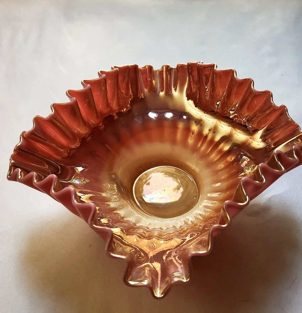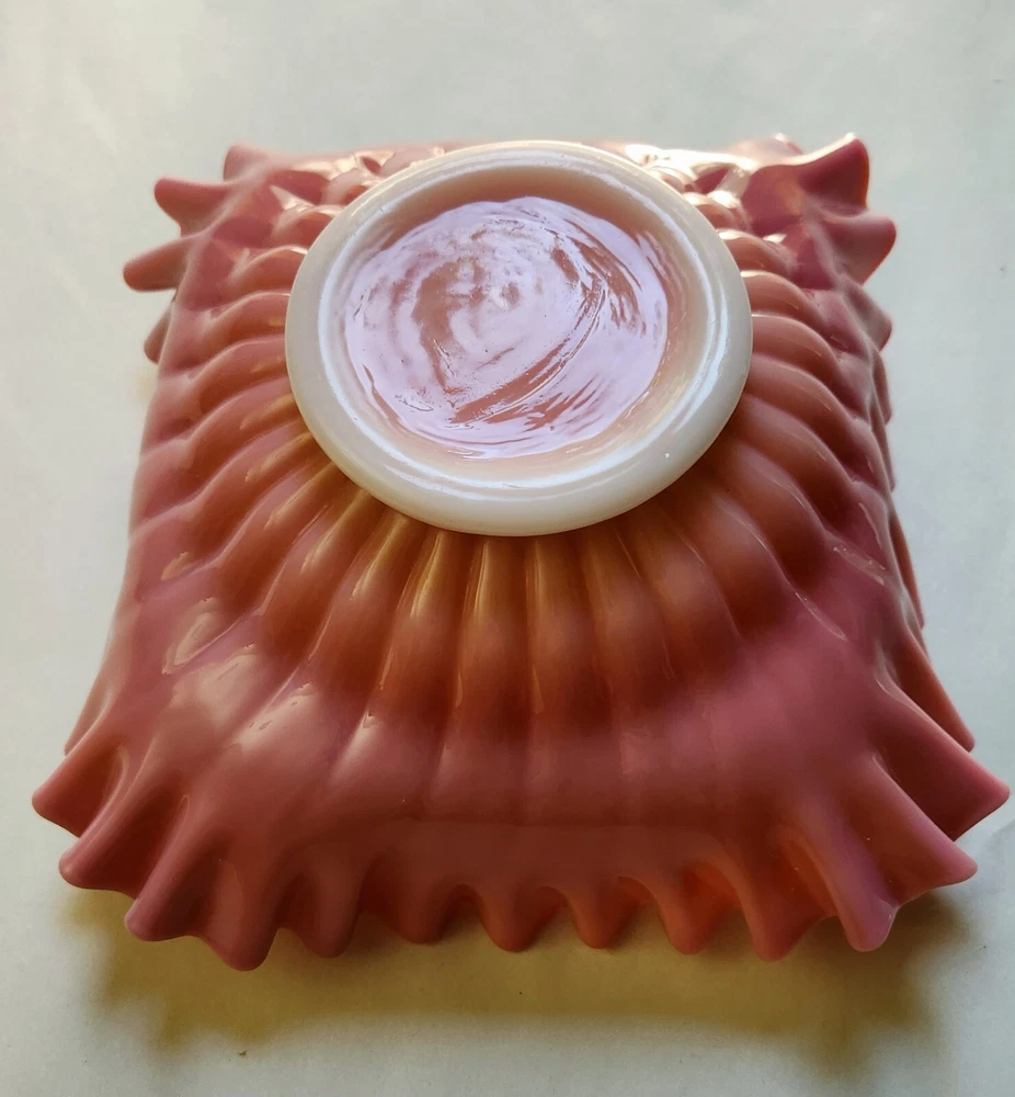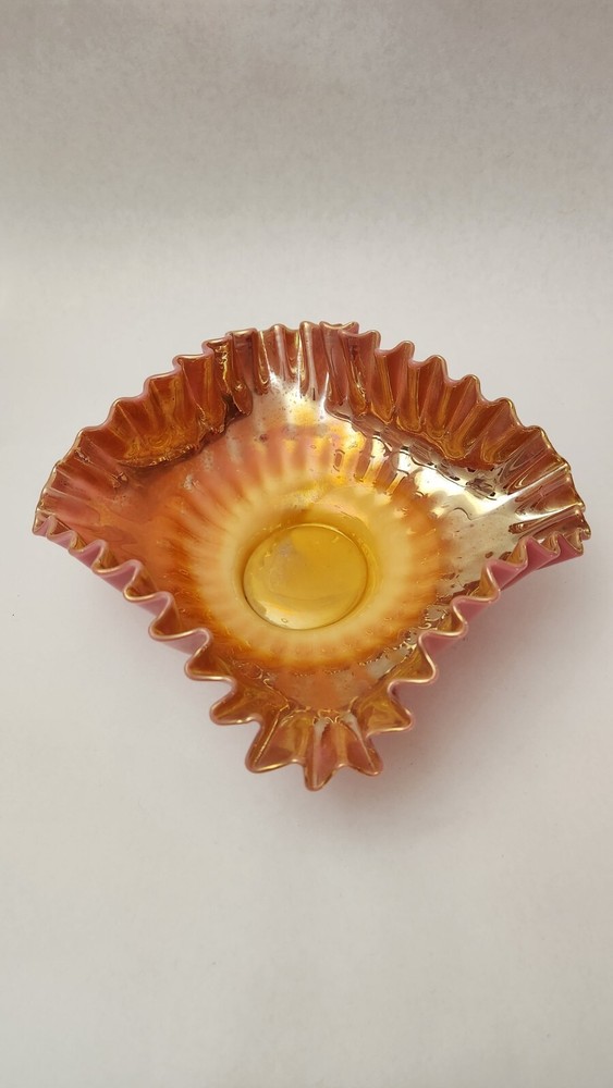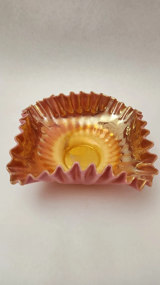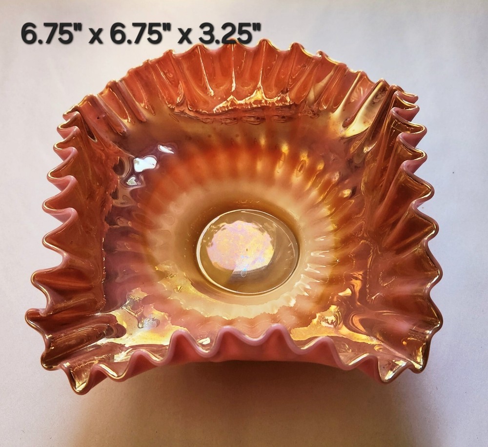 This beautiful decorative bowl is the perfect addition to any collection. With its stunning peach blow pattern and vintage design, it is sure to catch the eye of any admirer. Made of high-quality glass and crafted in the United States using studio techniques, this bowl is a true work of art. The square shape and 6.5" size make it ideal for displaying on a shelf or using to serve your favorite snacks. The bowl features the Martinsville/Viking brand and is themed as a Brides Bowl. Whether you are a collector or just looking for a unique piece to add to your home, this bowl is sure to impress. Excellent condition without damage of any kind.
