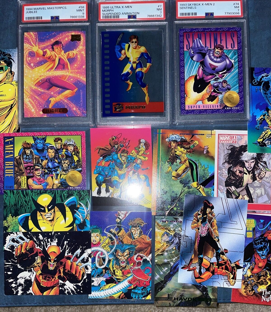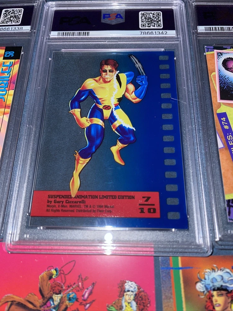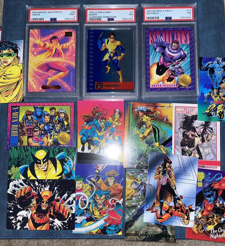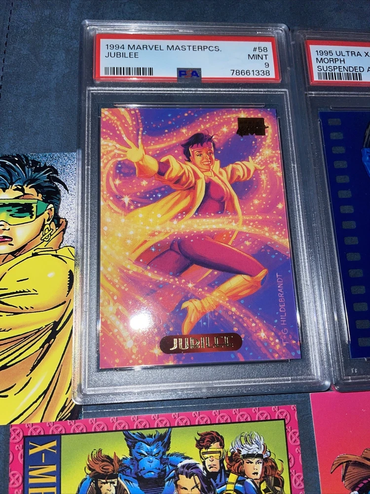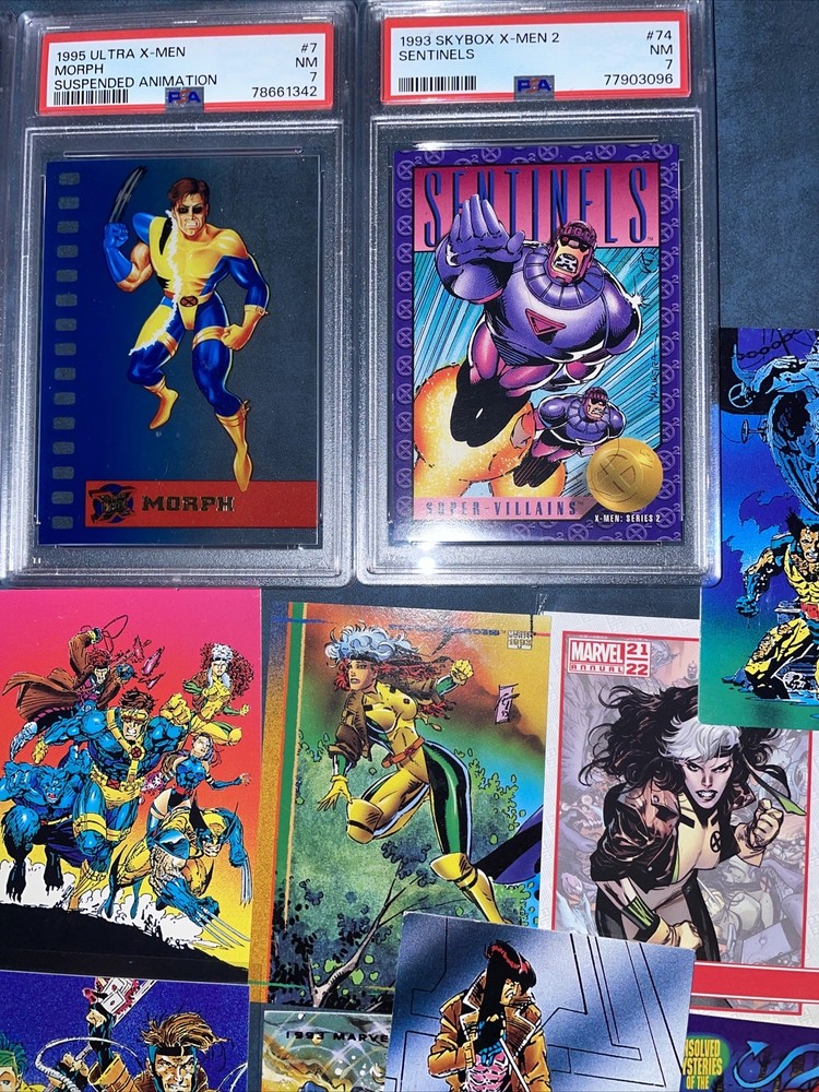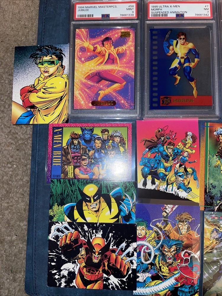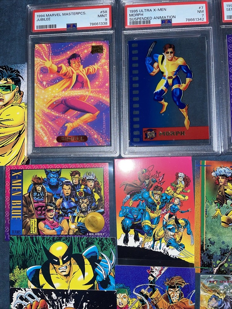 Marvel Cards Variety Graded Collection X-MEN Jubilee Morph Sentinels PSA 7-9 Mint! + Bonus cards Amazing variety of Marvel cards featuring X-men characters. You get all shown in pictures. At least Near Mint-Mint or better. Be confident in your purchase as I have over 12 years experience and have 100% feedback. All cards will ship securely placed with protective padding/bubblewrap and cardboard around cards to avoid bending and then wrapped in extra bubble wrap and bubble mailer with plenty of padding to insure safe delivery. I ship all my cards in the same way I would want mine to be shipped to me. Please feel free to reach out with any questions anytime. Be sure to checkout my other upcoming Non-Sport trading card listings ranging from Star Wars, Marvel, DC, and a variety of other collectibles. Fast and Free shipping!