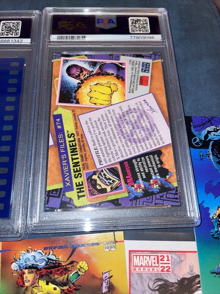 Absolutely thrilled with this Marvel X-MEN card collection! The Jubilee, Morph, and Sentinel cards in PSA 7-9 Mint condition are incredible. The bonus cards were a great surprise too—everything arrived in perfect shape thanks to the seller’s super secure packaging. As a long-time collector, I really appreciate the care taken with shipping. 100% feedback is well-earned—this is a trustworthy seller with an amazing selection. Highly recommend for any Marvel fan!