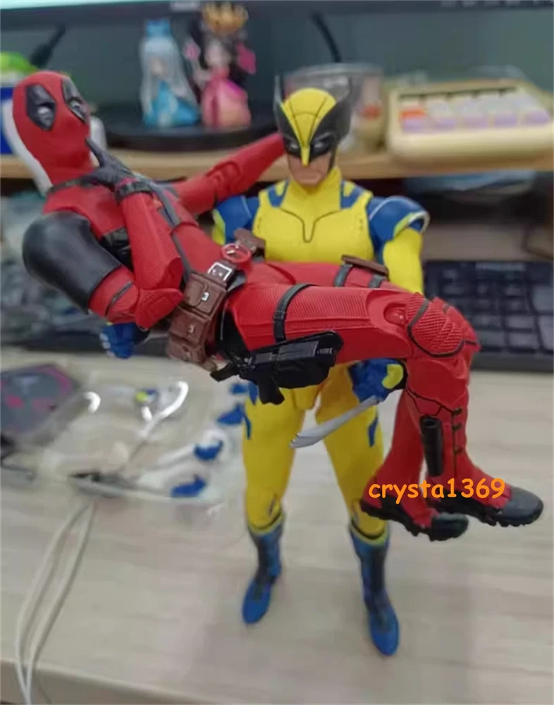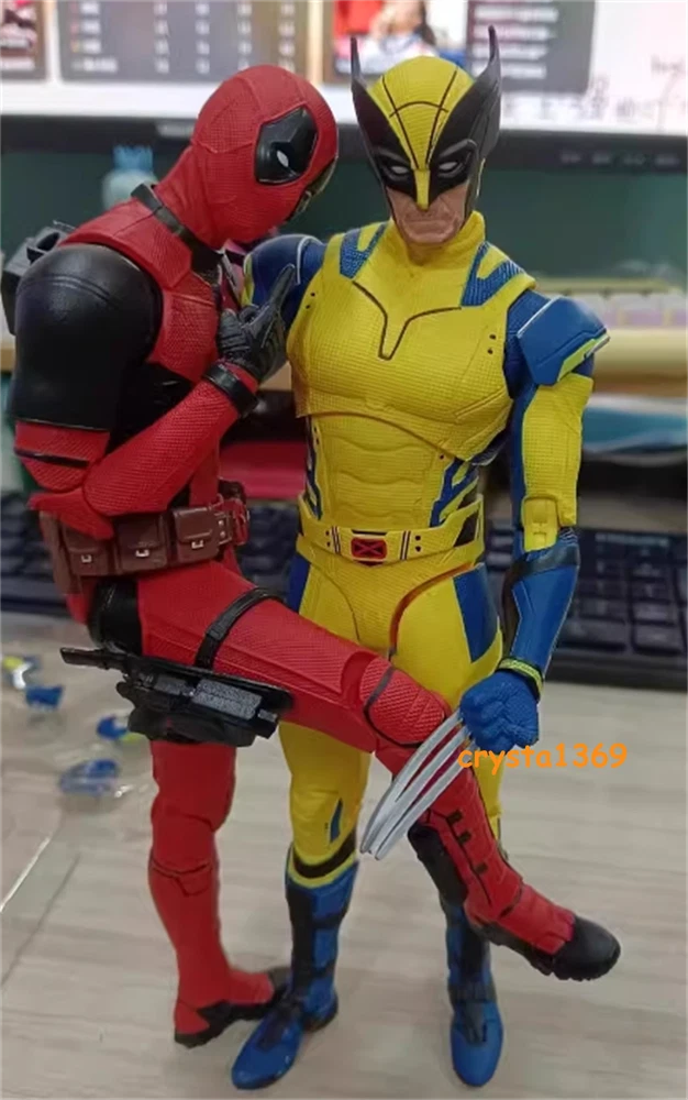 This Marvel action figure set features Deadpool and Wolverine, two iconic characters from the Deadpool franchise. The collectible model has movable joints and is perfect for any fan of the franchise. The figure is made for display and play, and is a great addition to any collection. The action figure set is designed for fans of the Deadpool movie and TV show, and features Ryan Reynolds and Hugh Jackman. The brand is Marvel and the type is an action figure. The set is perfect for collectors and fans of the franchise, and is a great way to show off your love for Deadpool and Wolverine.