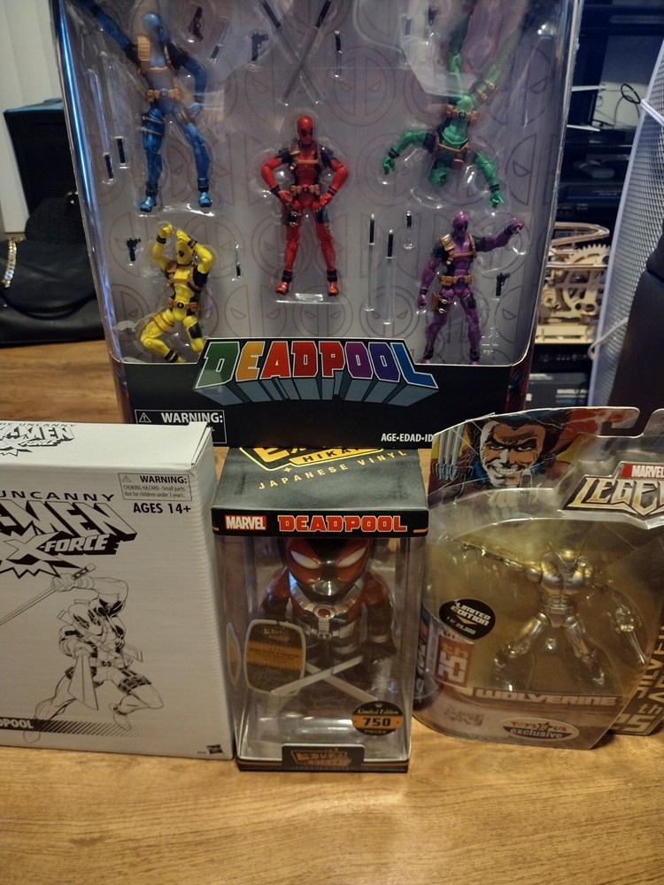 I have some Deadpool and wolverine figures. All are new and never opened. The boxes do have some wear and scratches. Please ask any questions before buying thank you.