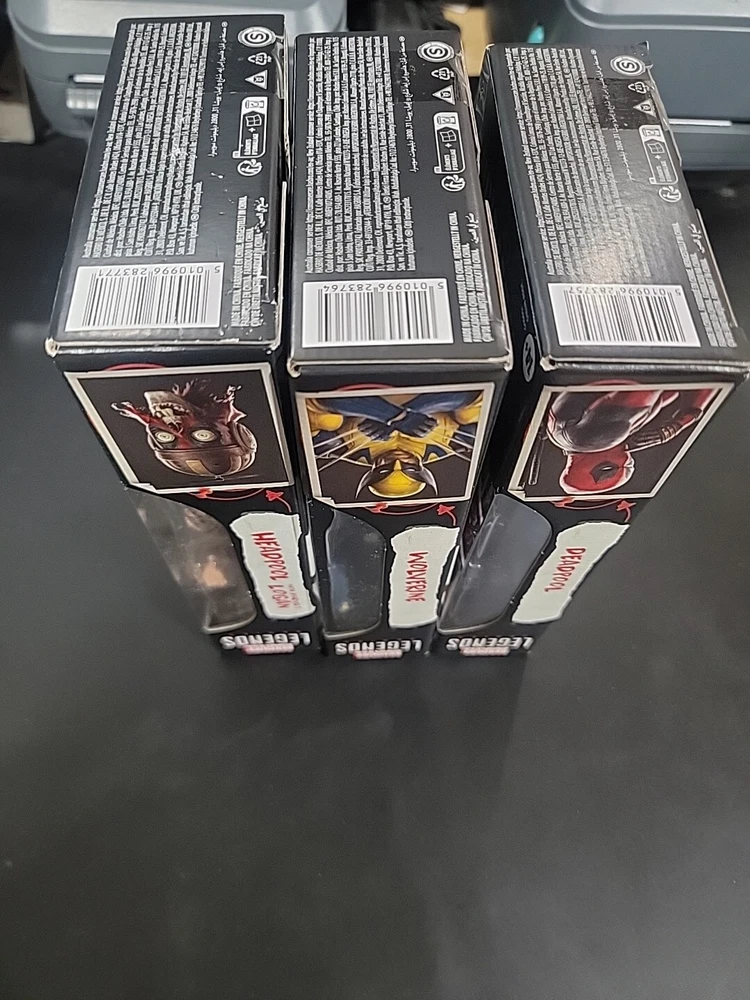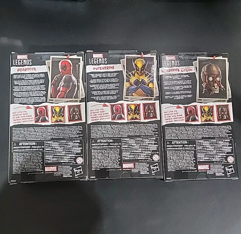 This Marvel Legends bundle includes three action figures - Deadpool, Wolverine, and Headpool. These figures are perfect for any fan of the Deadpool and Wolverine movie or Marvel franchise. The set is in hand and ready for display or play. The figures are of high quality. The bundle is a great value for collectors or anyone looking to add these iconic characters to their collection!