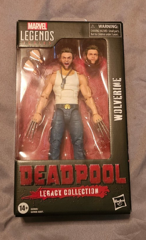 Here is a 2024 Marvel Legends Deadpool Legacy Collection and Deadpool & Wolverine figure set. The Deadpool Legacy Collection figure features Logan (Hugh Jackman) and the Deadpool & Wolverine figure features Wolverine in is classic/iconic yellow and blue costume. Each figure is in its sealed box, ready for your collection.