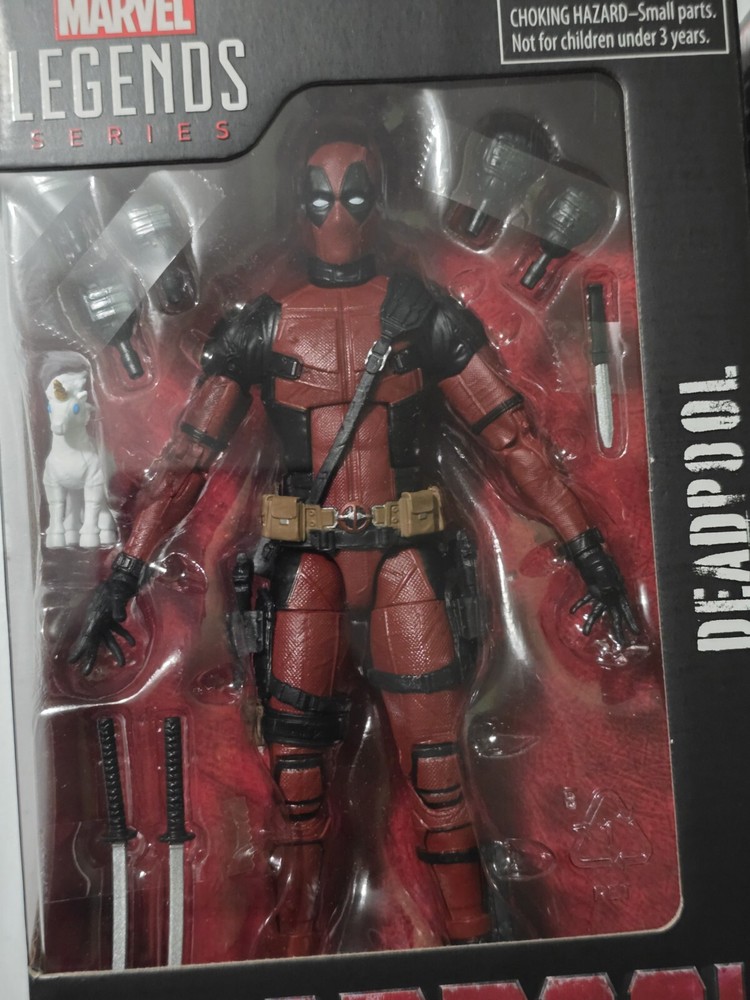 This new, unopened Marvel Legends Series action figure features Deadpool from the 2024 movie. The 6-inch figure comes with a gun and sword and is made of red plastic. It is part of the Legacy Collection and is recommended for children ages 4 and up. The packaging is original and includes all the details fans expect from Marvel Legends toys. This item is perfect for collectors and fans of the Marvel Legends Series.