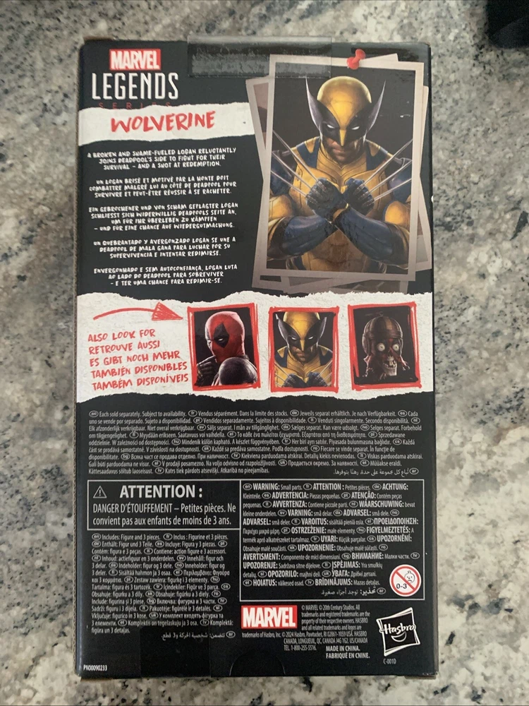 The product is a 6" Wolverine action figure from the Marvel Legends series, featuring the character from X-MEN and the franchise of Deadpool & Wolverine. It is made of plastic with a 1:12 scale and is part of the DEADPOOL AND WOLVERINE series manufactured in 2024. The action figure showcases Wolverine in his iconic yellow costume, with transforming features and designed to resemble Hugh Jackman's portrayal of the character. This collectible item is a must-have for fans of the X-Men and Marvel universe.