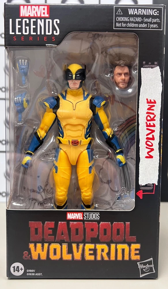 The Marvel Legends Deadpool & Wolverine action figure features Wolverine in his iconic yellow suit from the Marvel (MCU) franchise. Standing at 6 inches tall in a 1:12 scale, this plastic figure is part of the Marvel Legends series by Hasbro. It is based on the character Wolverine portrayed by Hugh Jackman and is a part of the TV show Spider-Man. The figure was manufactured in 2024 for ages 14 and up.