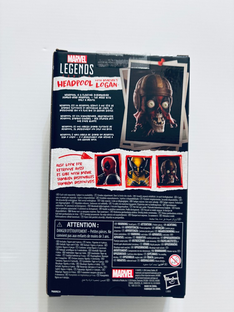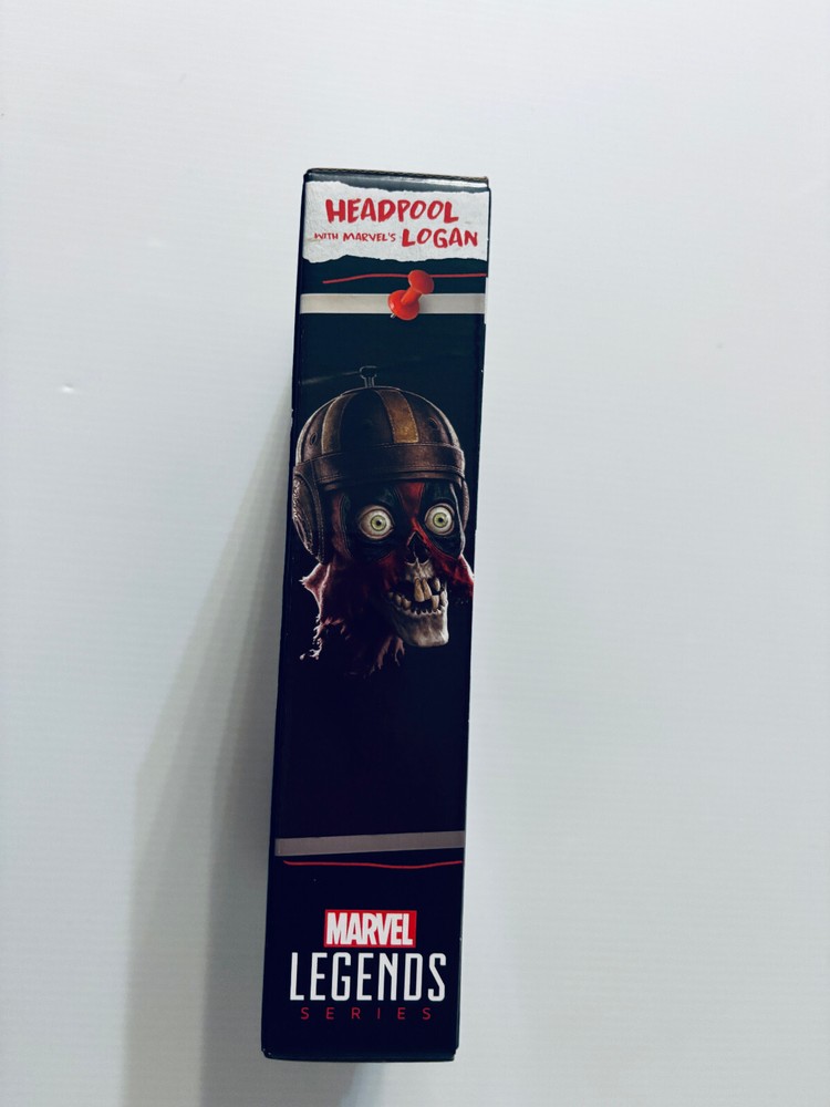 This is a modern action figure, made by Hasbro as part of the larger Marvel Legends series. This is a figure from the series made for the release of Deadpool & Wolverine. This is a figure of Logan along with a little figure of Headpool. The figure of Logan is about 6 inches tall. The packaging is still sealed, although there's a little corner wear (pictures #3 and #8).