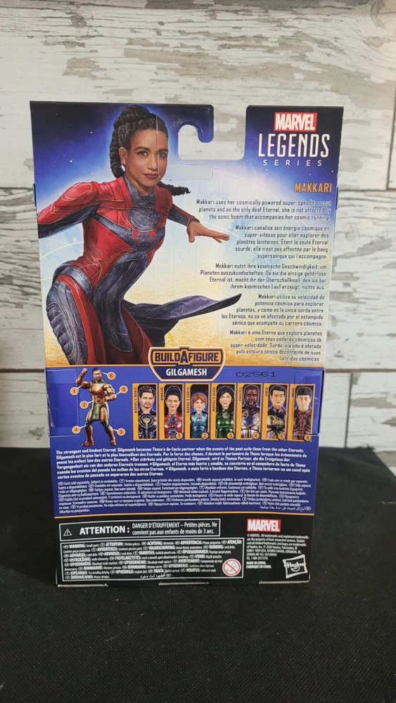 The product is a Marvel Legends Makkari action figure from the Gilgamesh BAF Series by Hasbro. It features characters like Deadpool, Iron Man, and Captain America from the X-Men franchise. The figure is 6 inches tall and part of the Marvel Legends Series, suitable for ages 4 and up. It is unopened in its original packaging. Items may show minor signs of shelf wear. Any major damage will be noted and pictured. Fast S/H! If you Have any questions, please feel free to ask. Thank you.!