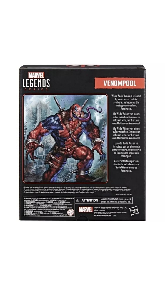 COMICS-INSPIRED VENOMPOOL: This collectible Venompool action figure is inspired by the character's appearance in Marvel's Deadpool comics DELUXE 6-INCH SCALE ACTION FIGURE: Deluxe figure is designed at the premium Marvel 6 inch action figure scale, standing at 7.65 inches tall (19.4 cm) COMICS -INSPIRED ACCESSORIES: Officially licensed Hasbro Marvel Legends set comes with 5 accessories, including swords that can be displayed on his back PREMIUM DESIGN AND DECO: Fans and collectors can display this premium action figure with window box package and comics-inspired design and deco in their collection DISPLAY-WORTHY ARTICULATION: Features over 20 points of articulation with fully poseable head, arms, and legs for dynamic poses on your shelf DEADPOOL, VENOMIZED: When Wade Wilson is infected by an extraterrestrial symbiote, he becomes the unstoppable machine, Venompool Bring the excitement and wonder of the Marvel Universe to your collection with Hasbro Marvel Legends Venompool figure! This collectible figure is detailed to look like the character from Marvel comic books. 6-inch scale Marvel figures are fully articulated with poseable head, arms, and legs. Marvel action figure set comes with 5 accessories, including alternate hands and weapon accessories that can be displayed on his back. Collectible action figure stands at 7.65 inches tall. Hasbro Marvel action figures' 6 inch scale make them great for posing and displaying in fans' collections. Reimagine Deadpool comics-inspired scenes on your shelf with Marvel Legends action figures