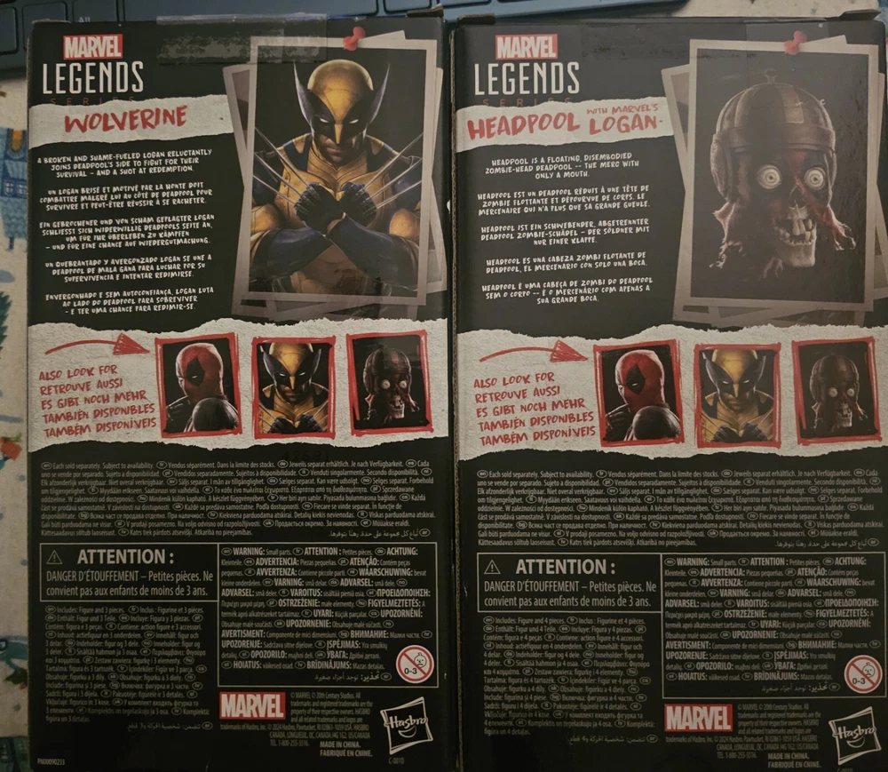 Marvel Legends Wolverine and Headpool with Marvel's Logan bundle, new in box, is a must-have for any comic book heroes collector. This action figure set features Headpool, Logan, and Wolverine in their respective costumes from the Deadpool and Wolverine movies. The figures are made of plastic and are 1:12 scale. This original, licensed reproduction set is perfect for fans of Ryan Reynolds and Hugh Jackman, and anyone who loves Marvel. The set includes an animator doll and is a great addition to any action figure collection. Don't miss your chance to own this amazing Marvel Legends set.