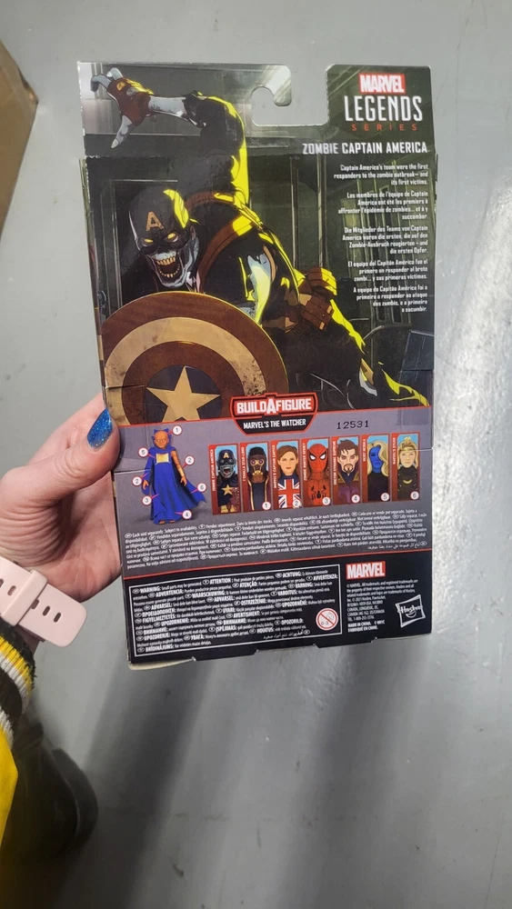 This Marvel Legends Series action figure features a 6-inch Zombie Captain America character and The Watcher BAF. The figure is brand new in its original (unopened) packaging, and was manufactured in 2021. The figure is highly detailed and includes accessories such as a shield and a sword. The action figure is perfect for fans of the Marvel franchise.
