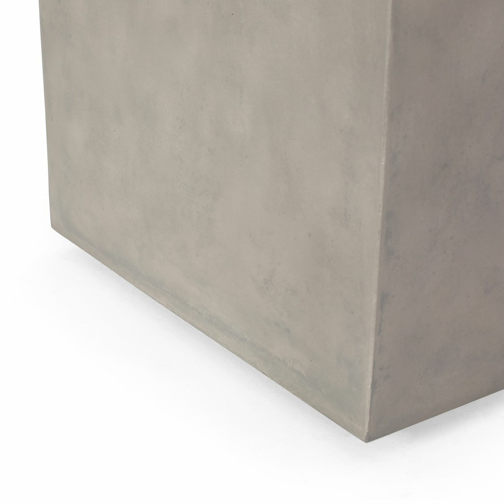 Provide your backyard space with a convenient side table that offers a spot to set down drinks, snacks, and other knick knacks. A perfect companion to any outdoor seating, this side table can also act as a tank holder, making this accessory a conveniently versatile addition for your home. Made from lightweight concrete with a refined ceramic top, this side table tank holder will give any space a stunning modern touch. So, cover your propane tank in style and enjoy a refreshing drink in one fell swoop. MODERN DESIGN: With clean, precise lines, our side table tank holder is the ideal modern accessory for your interior space. Finished with a polished black top and smooth concrete surface, this table not only offers a chic, minimalistic look but also provides incredible structure. LIGHTWEIGHT CONCRETE: This tank holder side table is constructed with lightweight concrete for a smooth, modern look. This provides a highly durable structure that can hold a substantial amount of weight. CERAMIC TOP: The top of this side table is completed with a sleek ceramic top that emphasizes this piece’s modern design. Finished with a polished surface, the ceramic adds an element of refinement to the side table. DIMENSIONS: Choose an accessory that is the perfect size for you and your furniture. This fire column is 16.00” W x 16.00” D x 20.00” H. You will love how much your space can transform with the simple addition of this charming fire column. NO ASSEMBLY REQUIRED Includes: One (1) Side Table Material: Light Weight Concrete Top Material: Ceramic Finish: Light Gray Top Finish: Gloss Black Hand-Crafted Details No Assembly Required Dimensions: 16.00 inches deep x 16.00 inches wide x 20.00 inches high