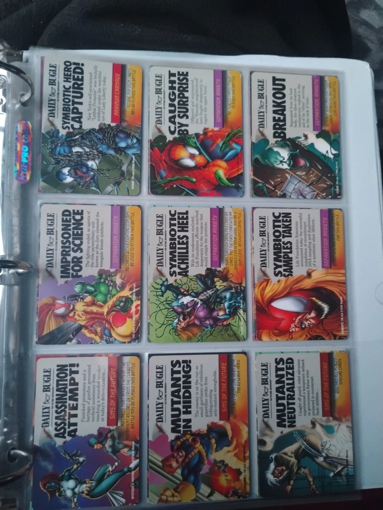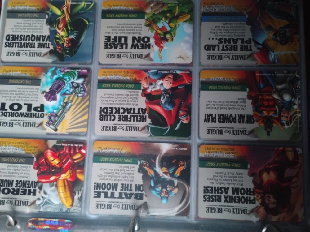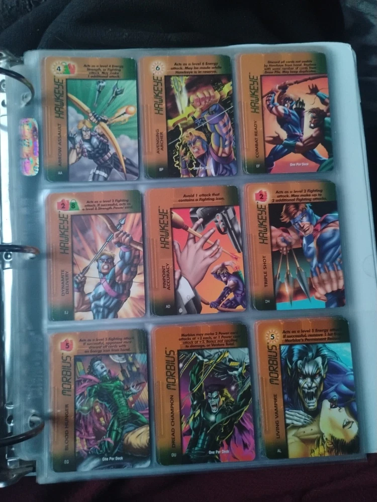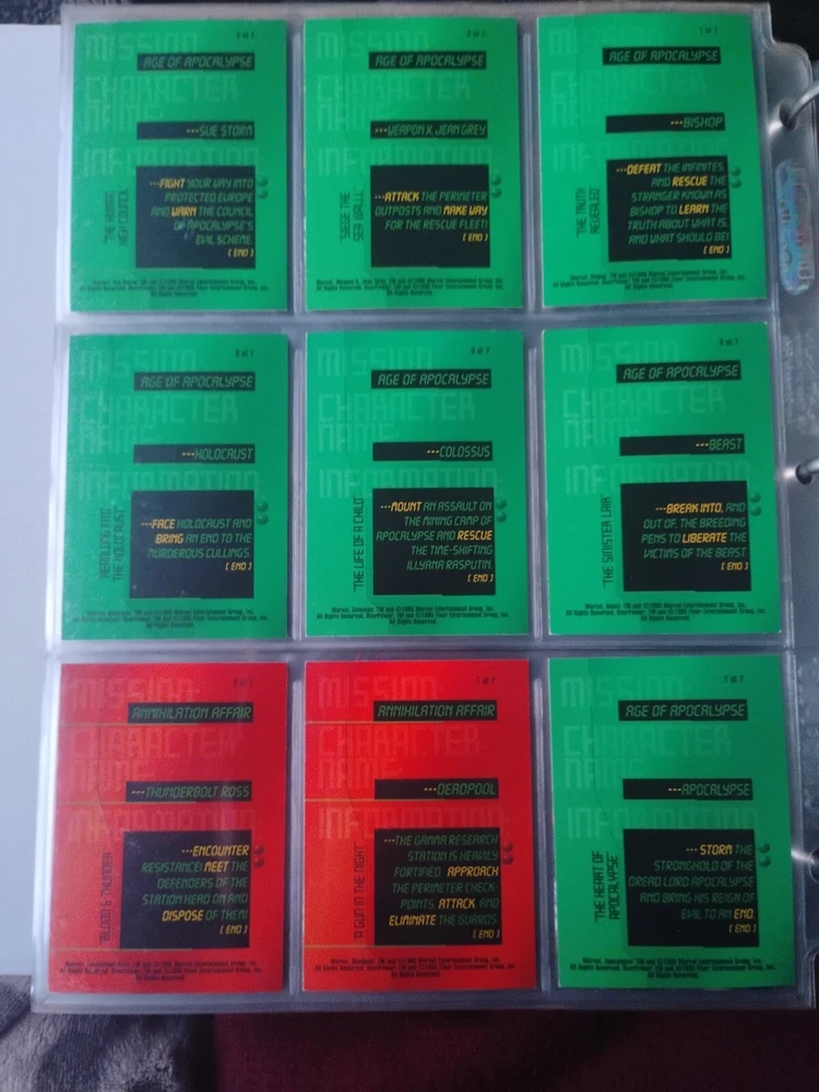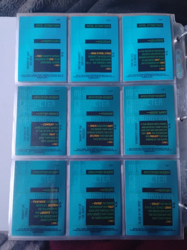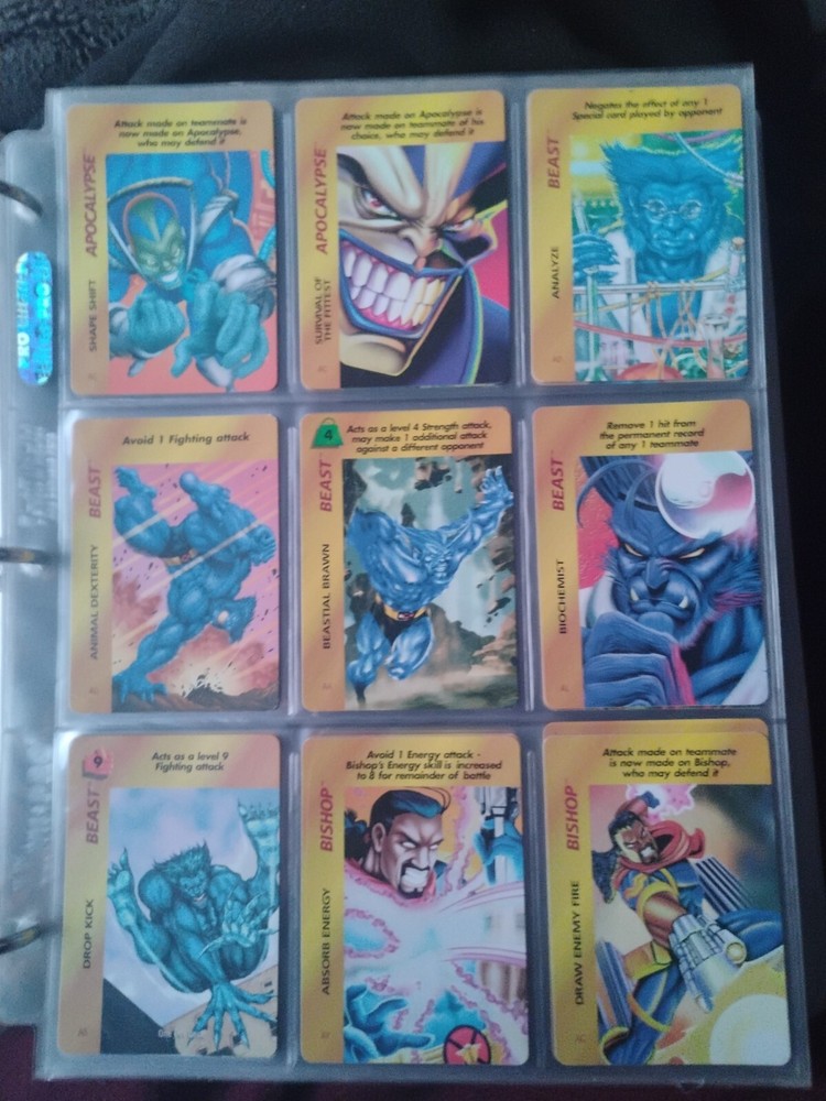 The Marvel Overpower Complete Set is a collection of non-sport trading cards card game featuring characters from the Marvel universe. These cards are a complete trading card set that allows fans to collect and trade their favorite heroes and villains. This set is complete and in a binder with card pages. Comes with all character cards, action cards, teamwork cards, mission cards, and instruction manual. Also included is the complete Overpower Mission Control set with added characters and missions. All cards in in mint/near mint condition. This is like Magic: the Gathering for Marvel fans.