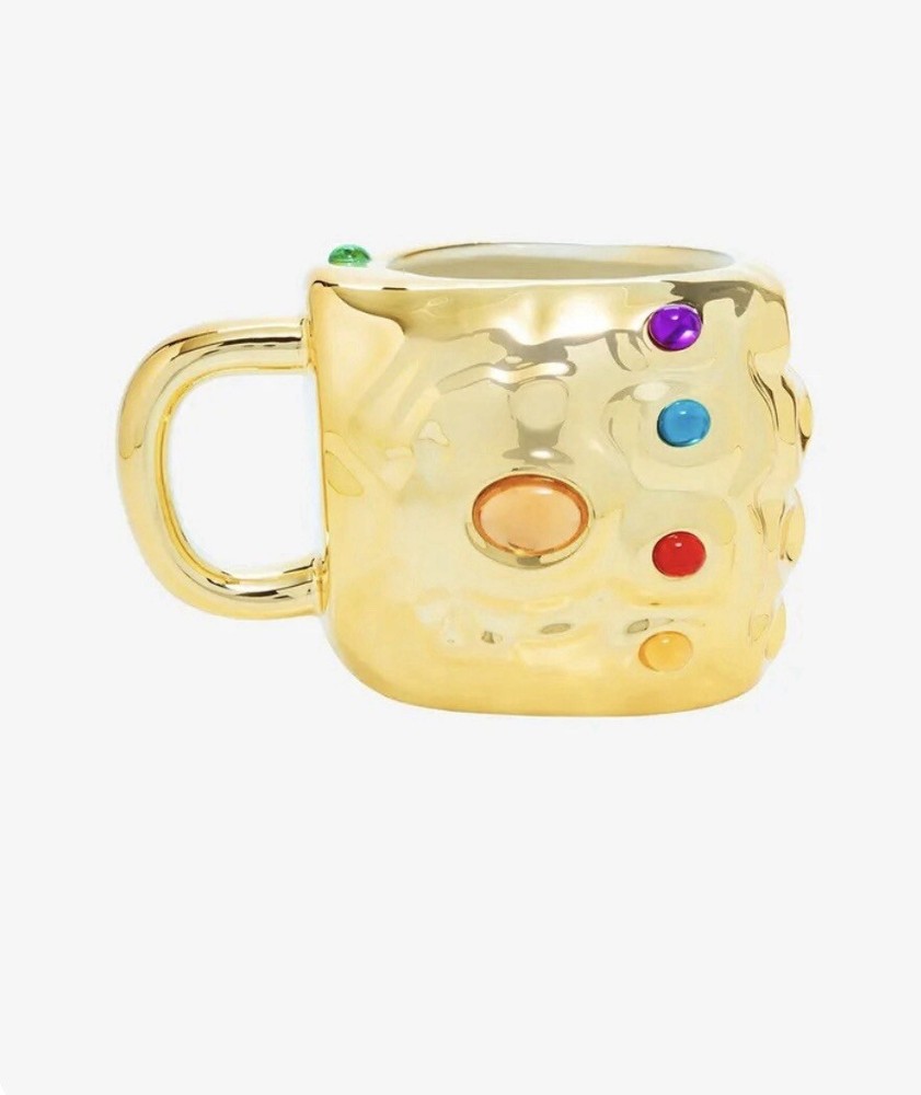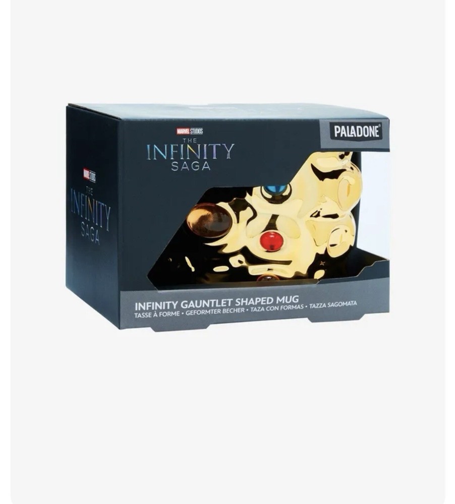 This Paladone mug is a must-have for any Marvel Studios fan. The gold color and Gauntlet Shaped design make it a unique addition to your collection. It's perfect for enjoying your favorite beverage while showcasing your love for the Marvel Cinematic Universe. The mug is made by Paladone and is of high quality, ensuring that it will last for years to come. It's also a great gift for any Marvel fan, so be sure to add it to your collection today!