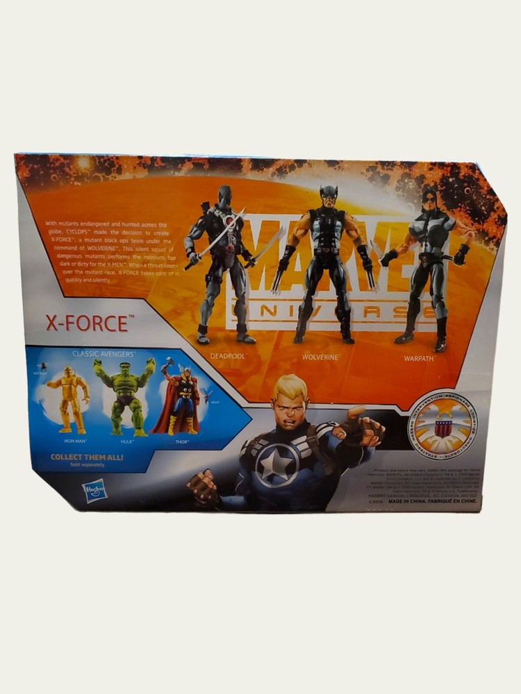 Marvel Universe X-Force Deadpool Wolverine Warpath 3-Pack 3.75" Action Figures. Red mark on plastic (see pictures).