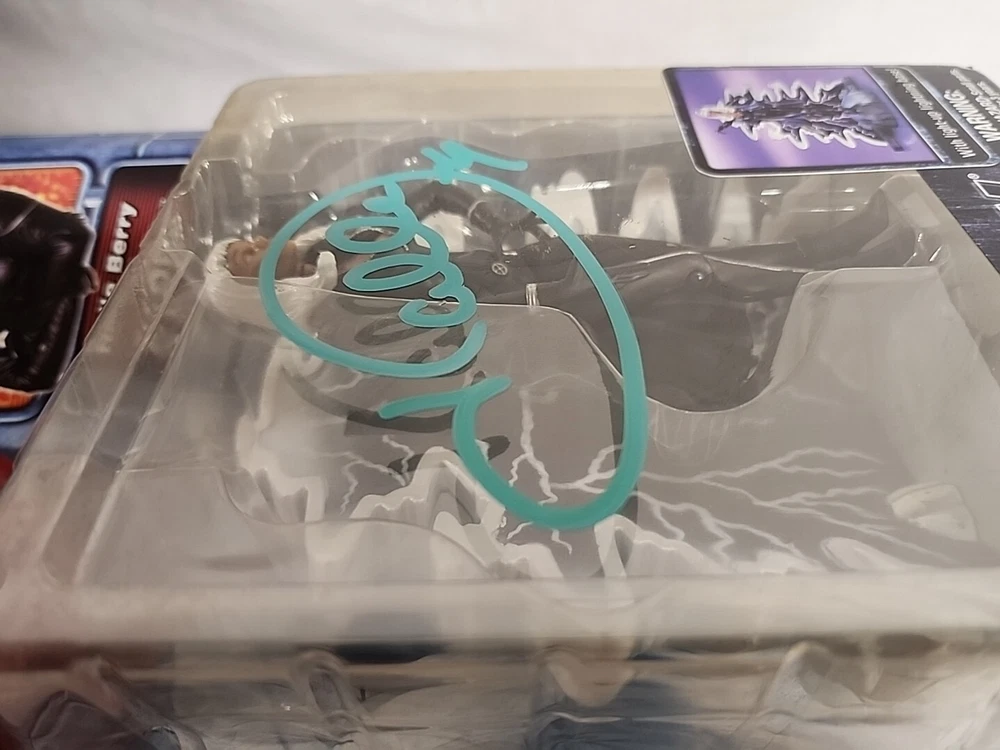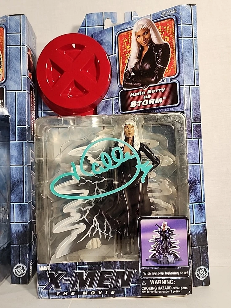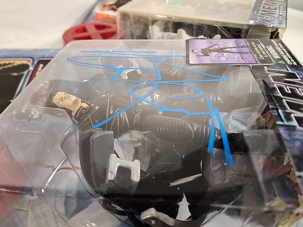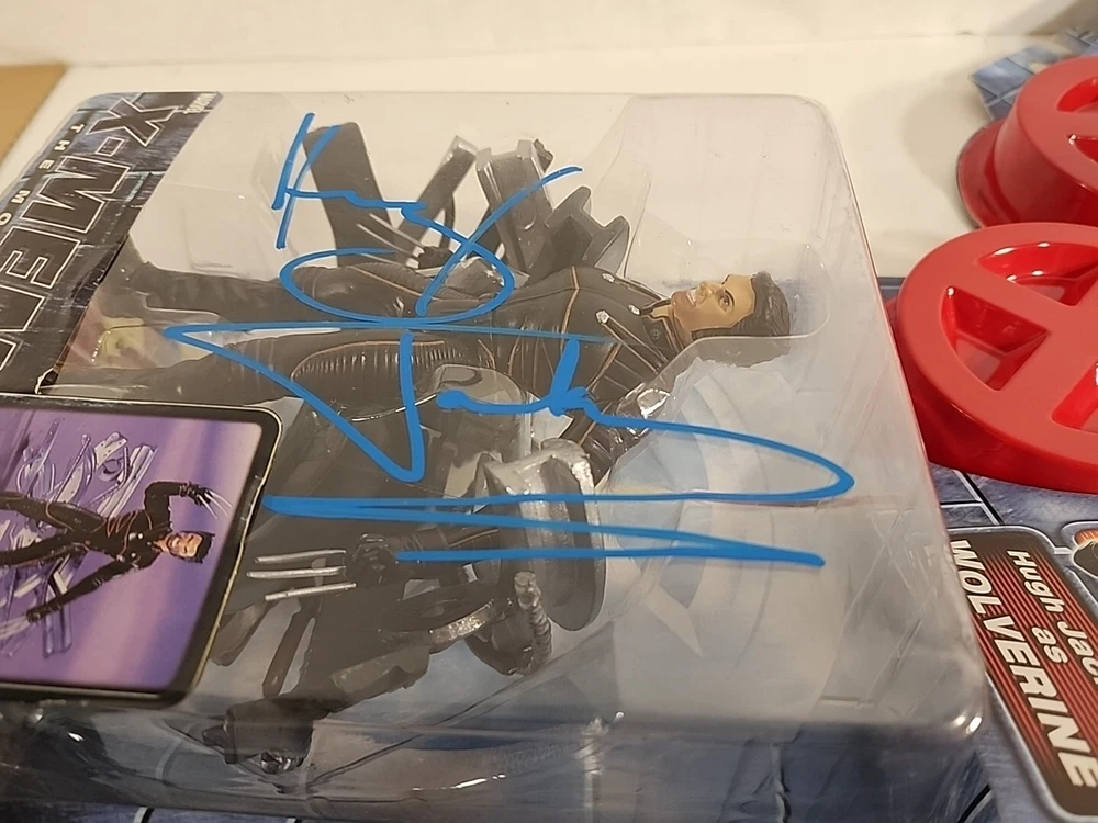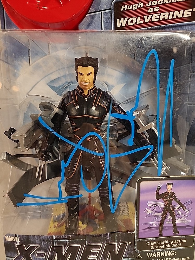These figures were hand signed in person from a convention. Because of that there is no COA and are not officially authenticated by a professional. The storm plastic is yellowing, but the signature still looks great. The Hugh Jackman signature has a couple of scuffs. Both boxes show signs of wear and are scuffed. Please see pictures.