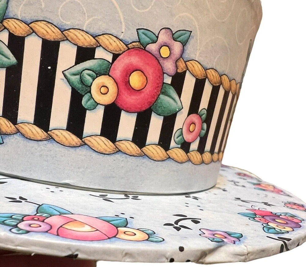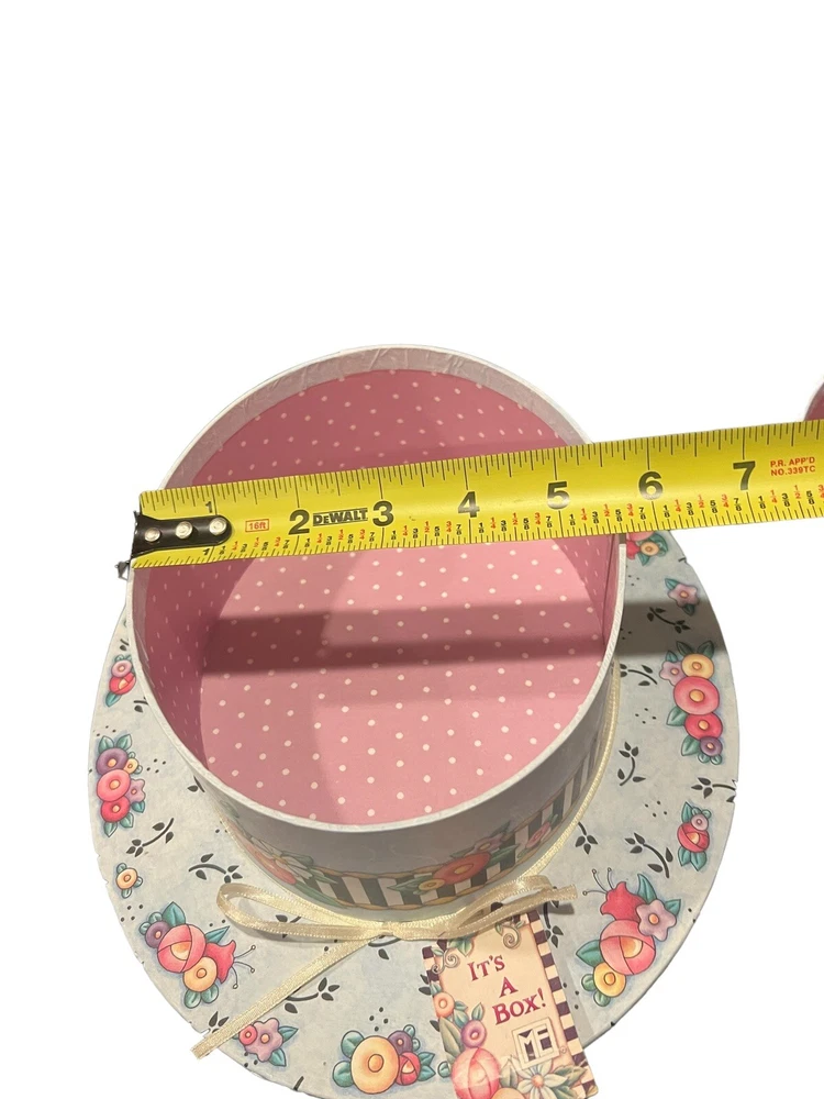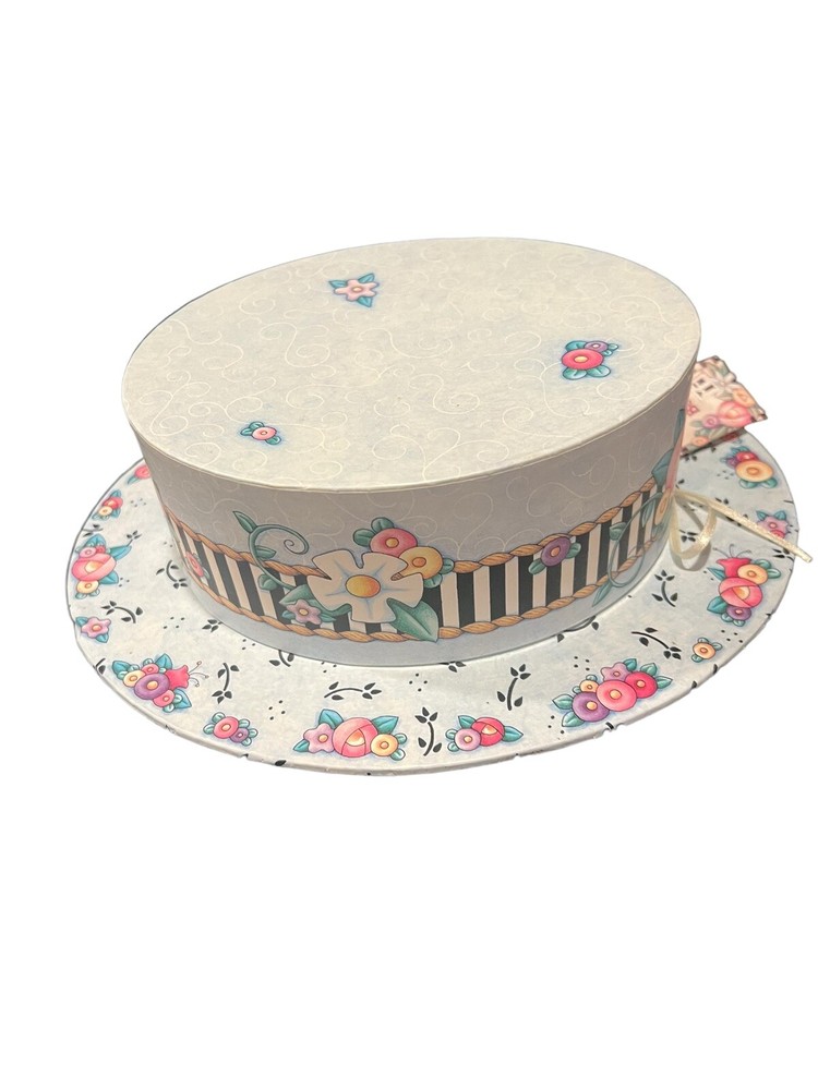 Mary Engelbreit Hat Shaped Gift Storage Box Light Blue Floral W/Tag...