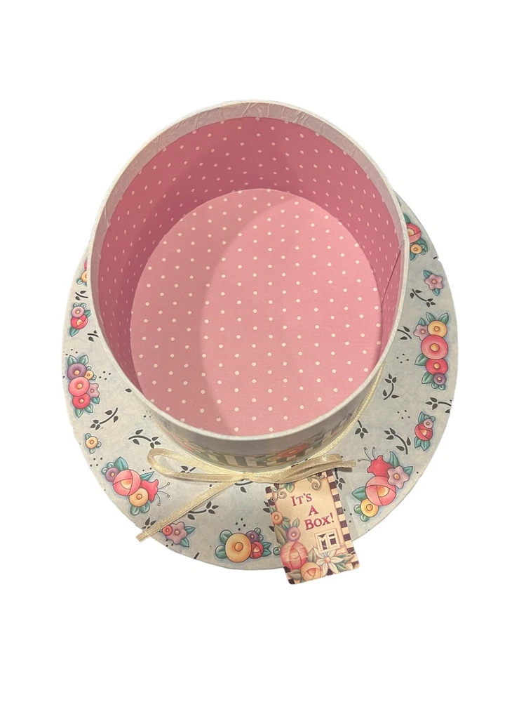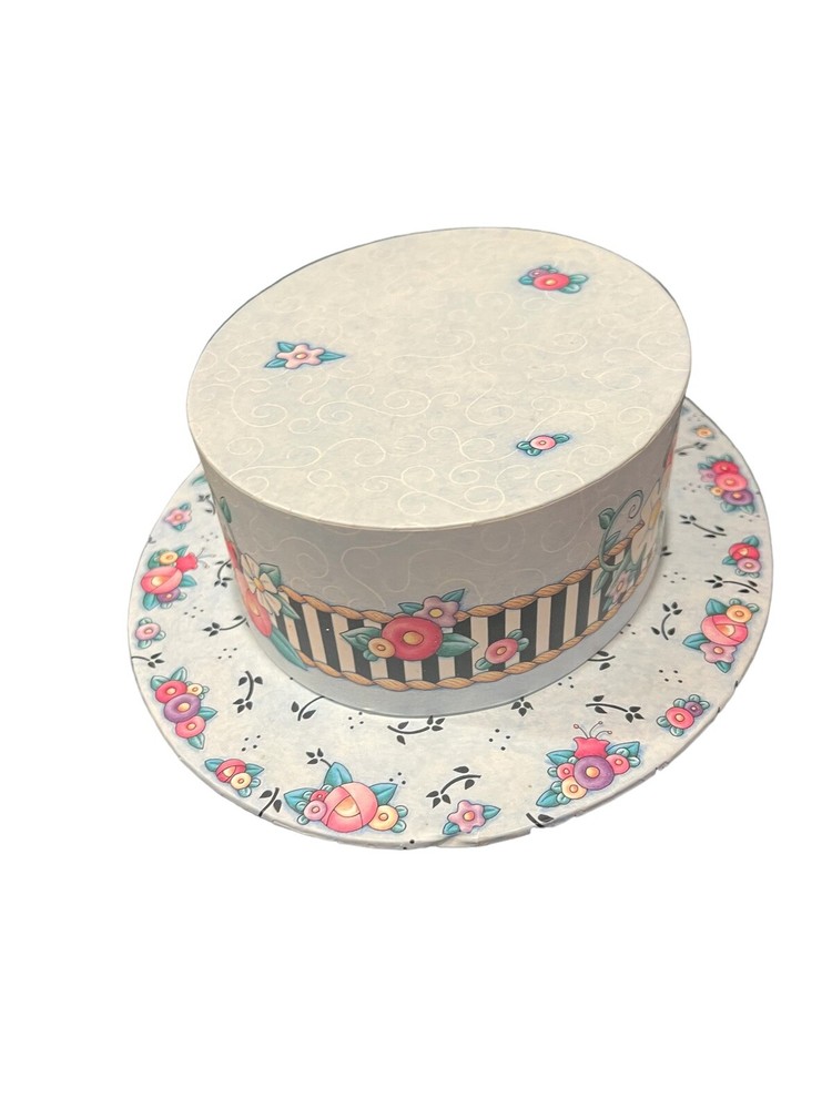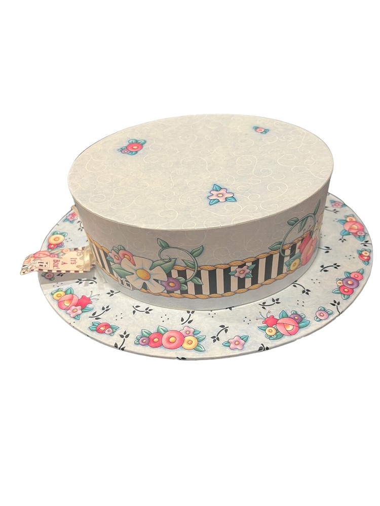 Mary Engelbreit Hat Shaped Gift Storage Box Light Blue Floral W/Tag