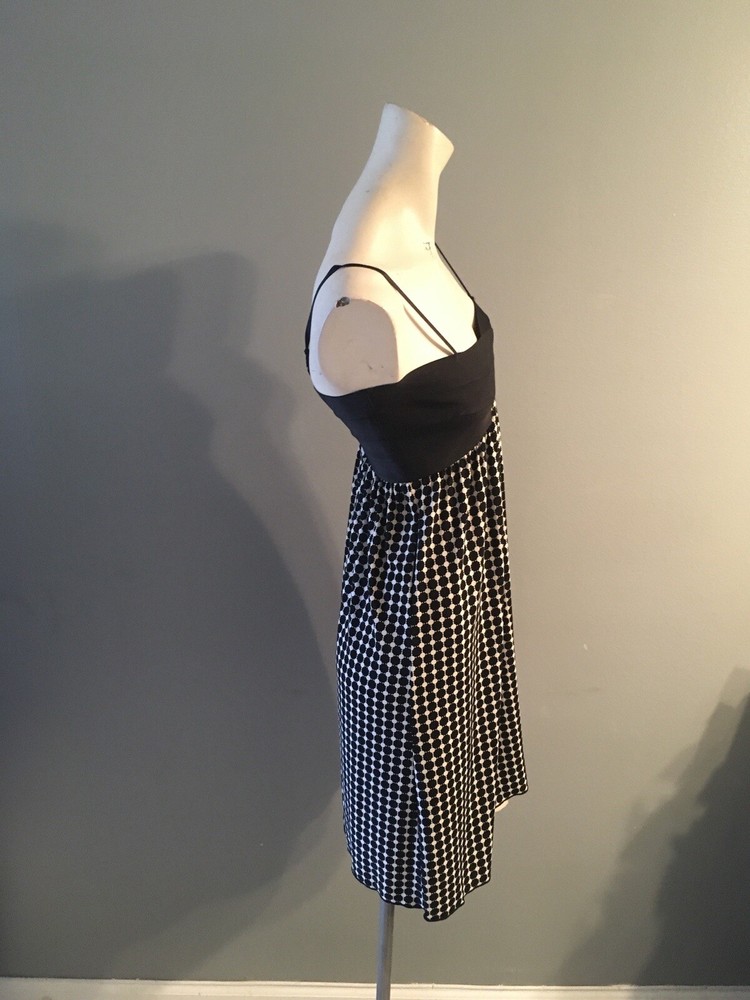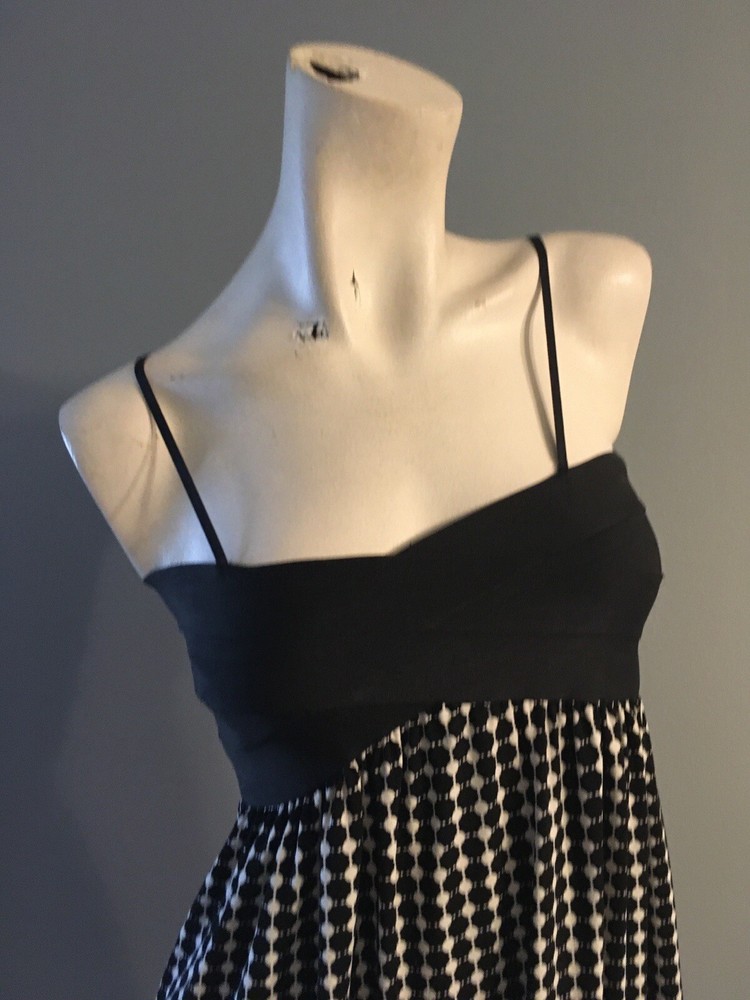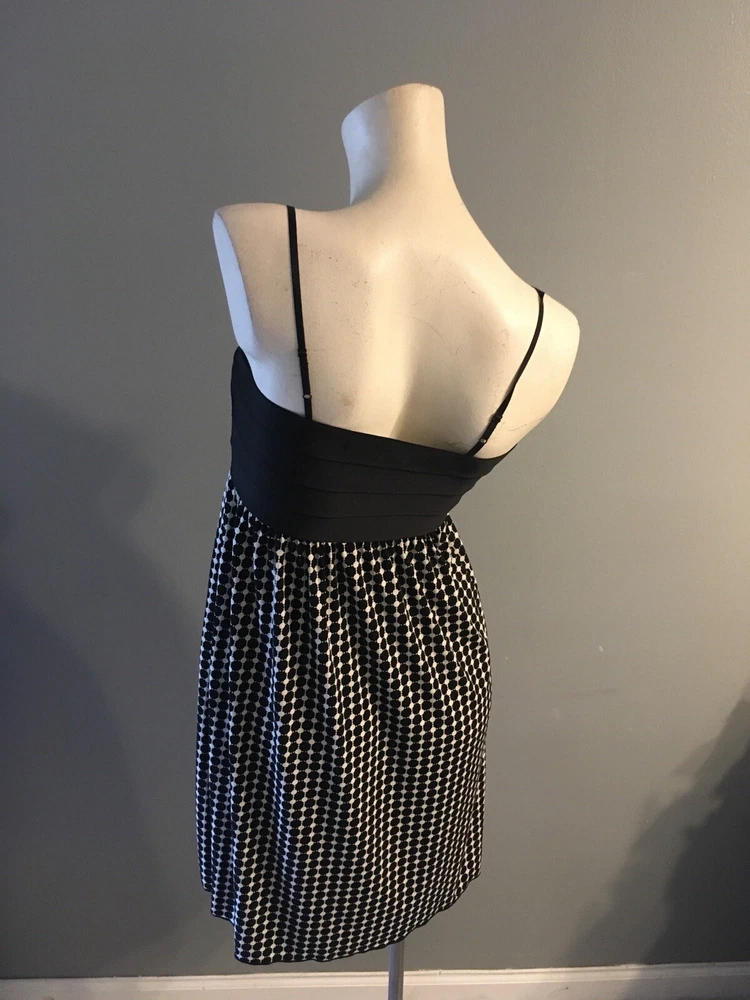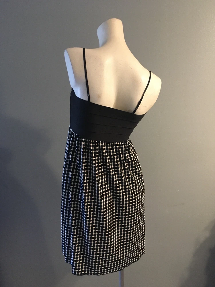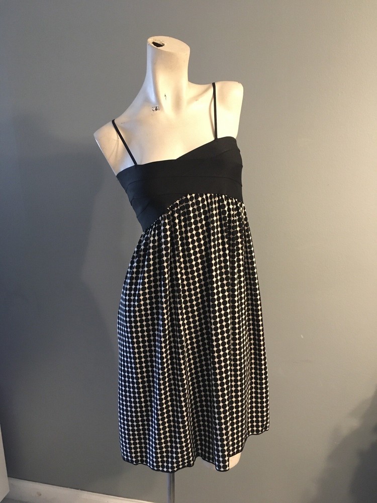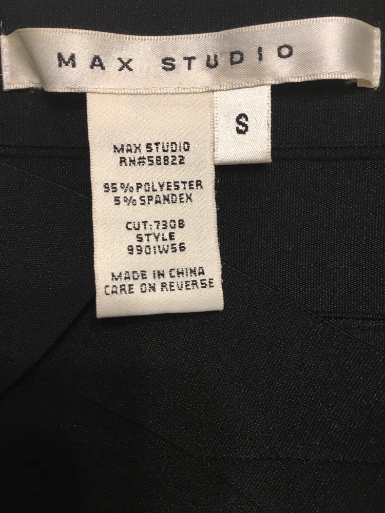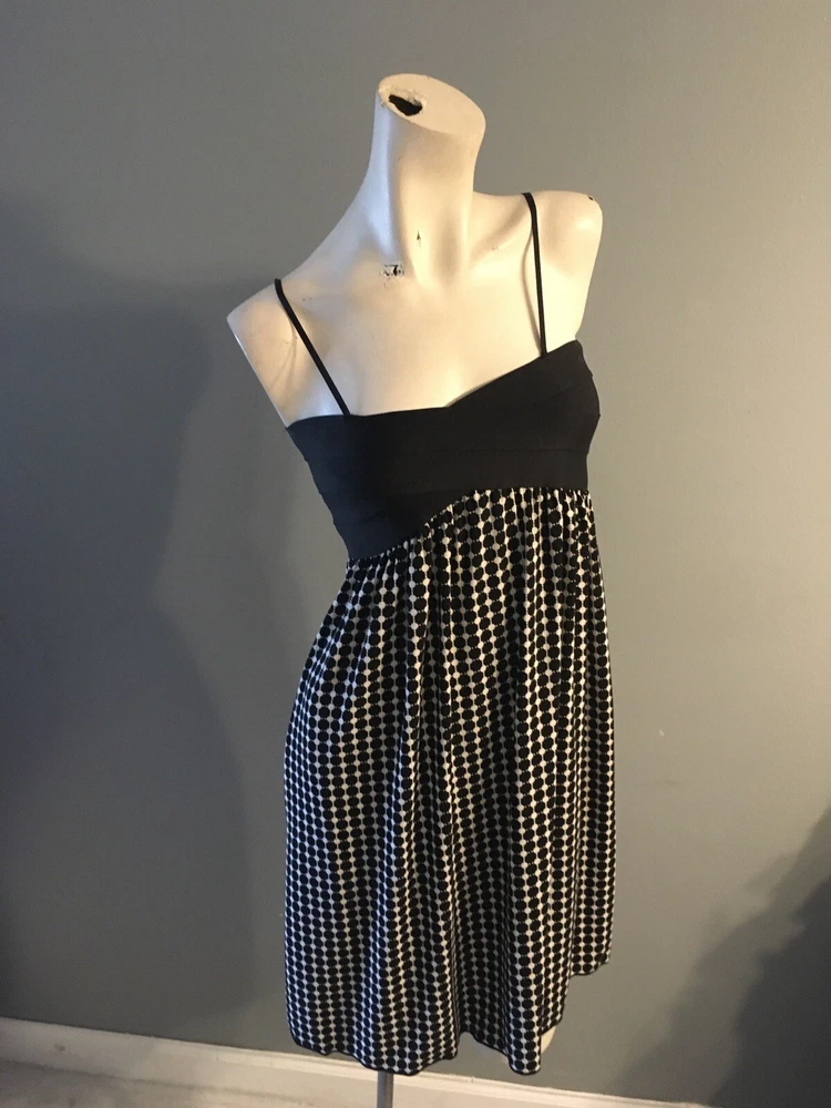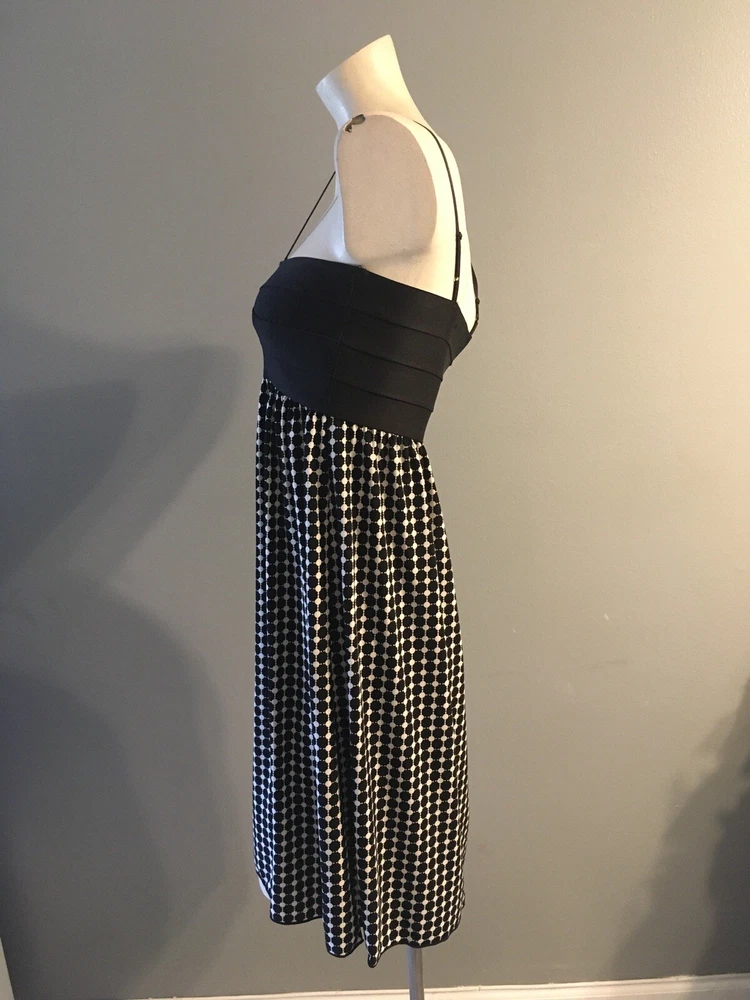 This geometric print spaghetti dress from Max Studio is a perfect addition to your wardrobe, whether it's for a party or a casual outing. The dress is made of a stretchy polyester-spandex blend fabric that is comfortable to wear and easy to care for with machine washing. The pleated accents and sweetheart neckline add a touch of femininity to the dress, while the pullover closure and sleeveless spaghetti straps keep it simple and easy to wear. The dress comes in a size S and is perfect for the summer and spring seasons. The colorful print is eye-catching and will make you stand out in a crowd. This dress is not vintage and is not personalized. The brand is Max Studio and the country of manufacture is China.