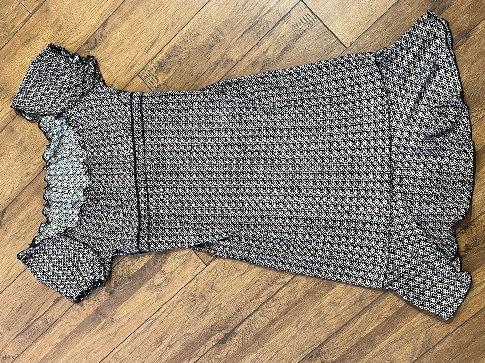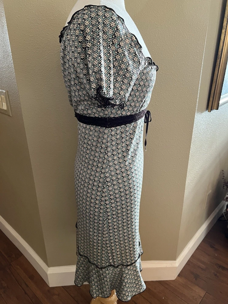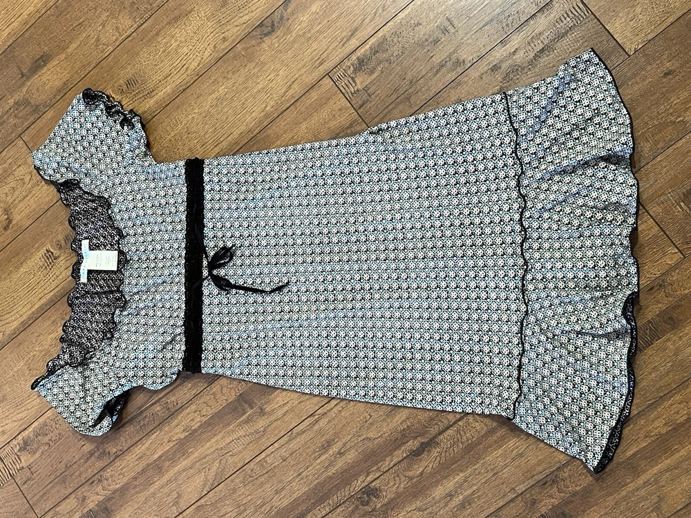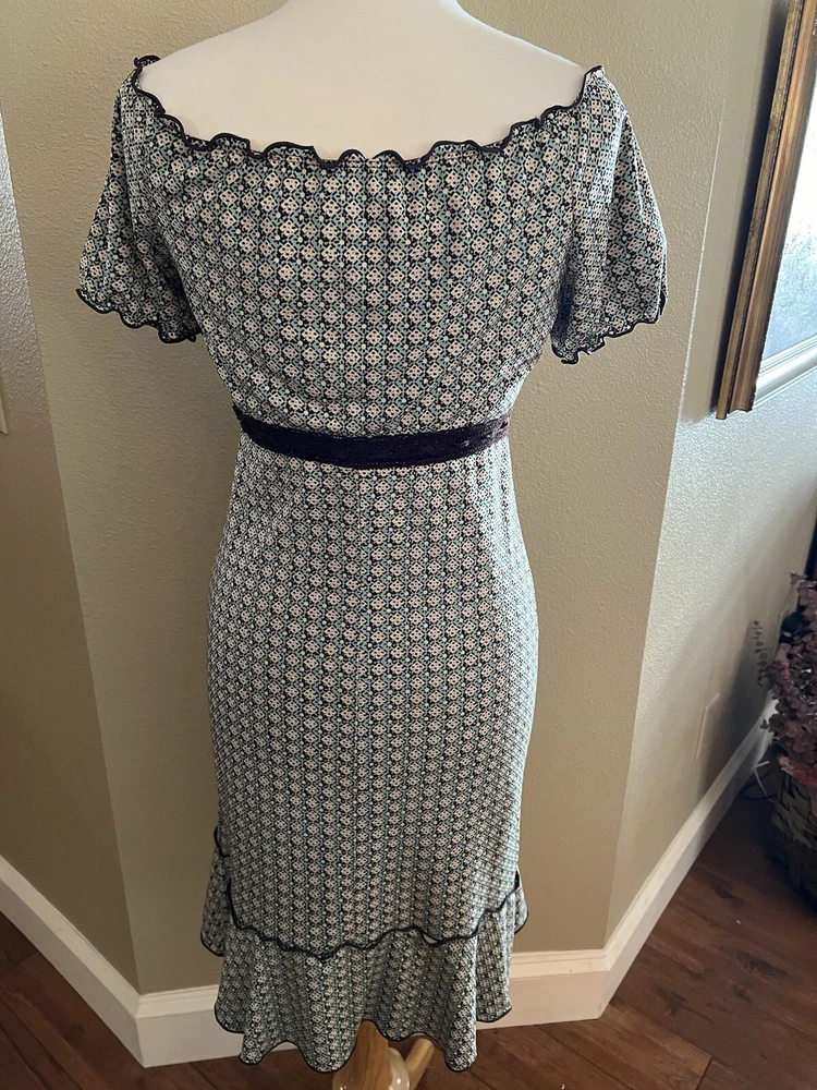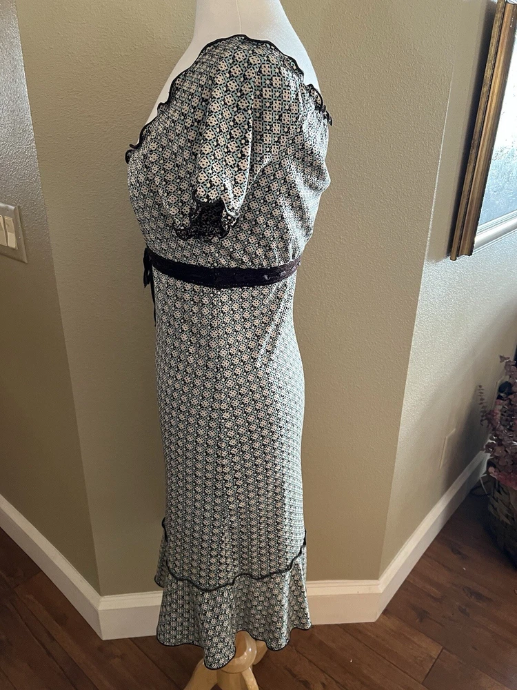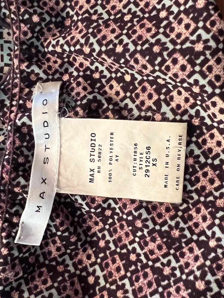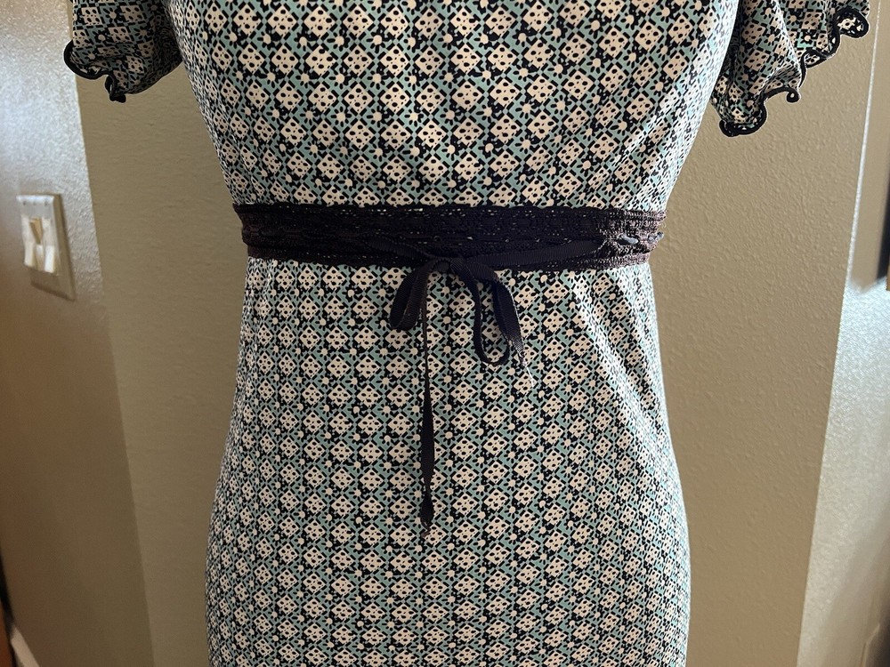 Max Studio Light Blue Brown Peasant Sweetheart Neck Off Shoulder Peasant Dress XS Fits like an extra small or small Fantastic condition no issues Measurements laying flat off shoulder Shoulder to shoulder 15 inches Bust 17 inches Waist 15 inches Shoulder to bottom 36 inches