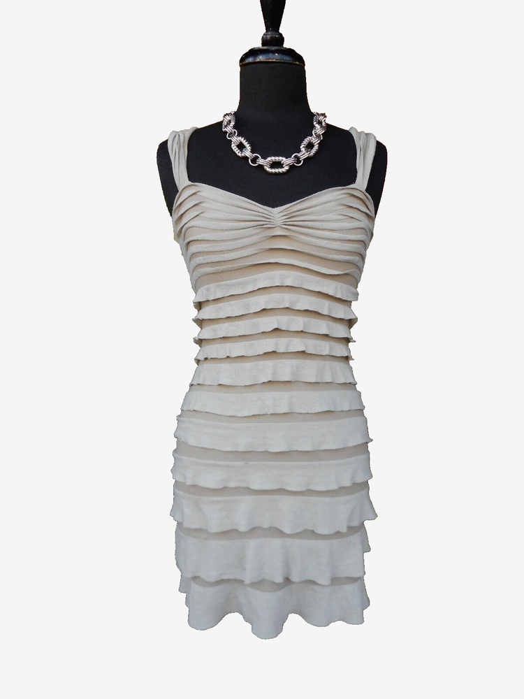 MAX STUDIO Stunning tiered stretch ruffle dress Chic nude blush beige color with a hint of "pink" Fully lined Bra friendly straps Stretchy fabric Check these approximate measurements - best for size small: 34" Long 30" Bust 26" Waist 34" Hips Will stretch with ease another 3-4" as needed Size tag removed, best for size small Excellent condition - classic wardrobe staple to wear in many ways~!