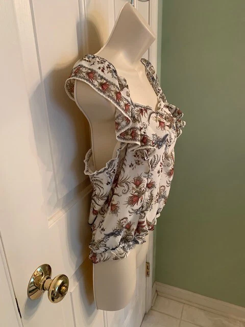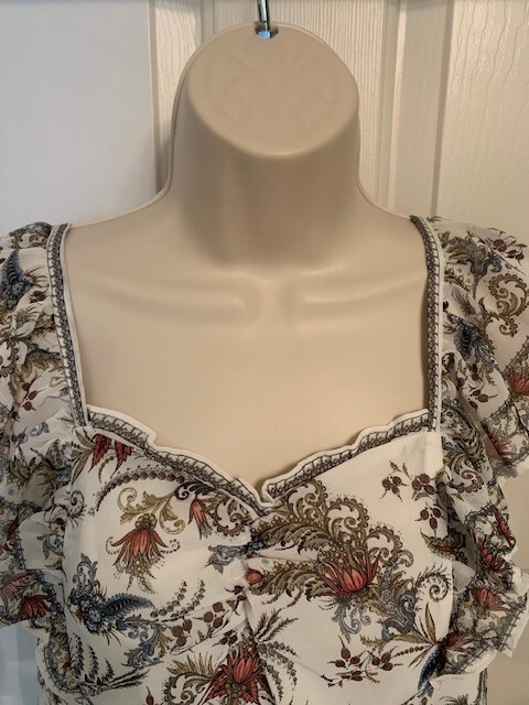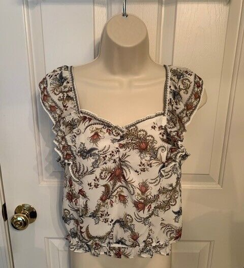 Max Studio Cotton Floral Crop Top w Ruffle Straps & Sweetheart Neckline Size S ($88.00) Measurements: Armpit to armpit ~ 17.5 inches Length from shoulder to hem ~ 21 inches