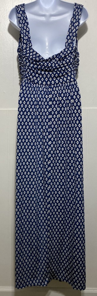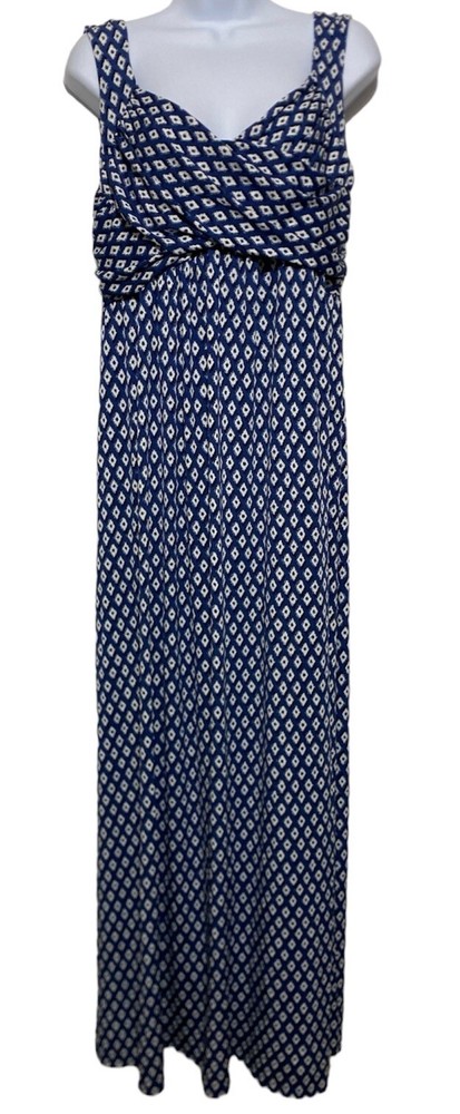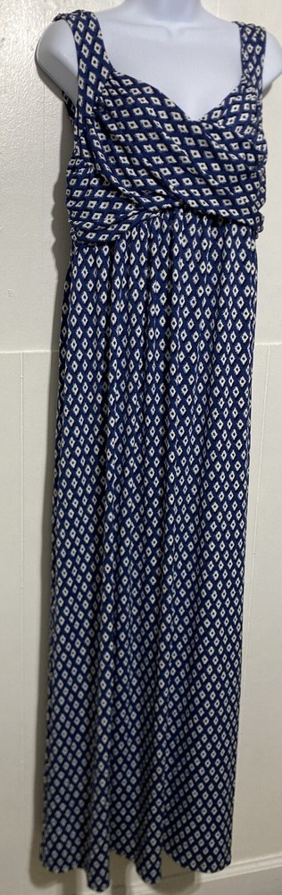 Max Studio Dress Women Size L ? Blue White Diamond Pattern Sleeveless Maxi **No Size Tag-See Measurements *Approximate Measurements* 18” Pit To Pit 17” Across At Waist 58” Shoulder To Hem