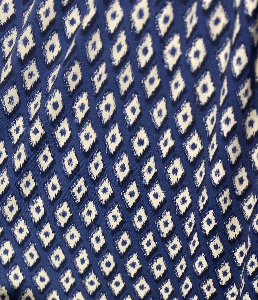 This dress is absolutely stunning! The blue and white diamond pattern is so eye-catching, and the lightweight fabric makes it perfect for summer. The fit is true to size—flattering and comfortable with just the right amount of flow. Love how effortlessly chic it looks, whether for a beach day or a casual outing. No size tag, but the measurements provided were spot-on. Definitely a great addition to my wardrobe!
