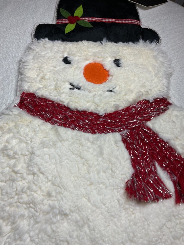 MAX STUDIO SHAPED STOCKING 1 SNOWMAN WHITE BLACK RED ORANGE 21 INCHES LONG NWT...