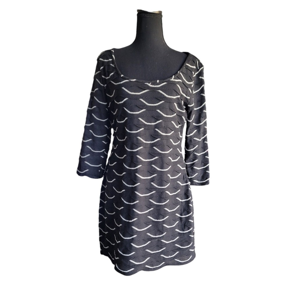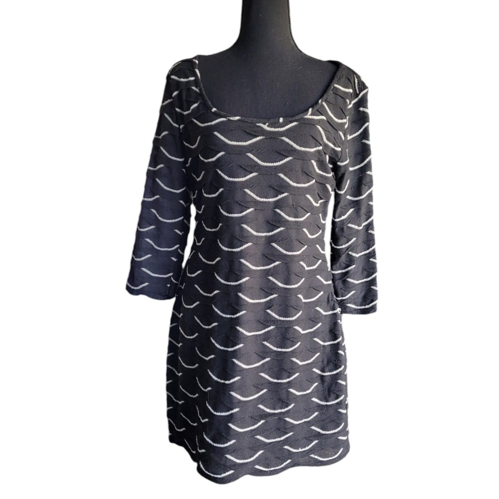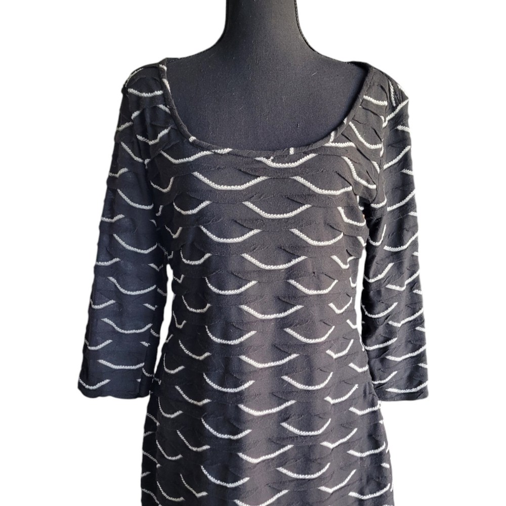 Description & Condition: Max Studio body-con mini featuring a textured, scallop shaped fabric. Pullover. sco0p neck and 3/4 fitted sleeves. Fabric: exterior is 100% polyester; fully lined in 65% polyester and 35% rayon Cleaning Instructions: hand wash or dry clean only Size: Medium Approximate measurement from top to bottom of garment: 33" Width across chest approximate measurement: 18" *****Max Studio specific sizing located in pics Lovely Day Resale is happy to assist you should you have any questions. We accept offers on most of our inventory. Check out our store for other items ranging from clothing and shoes to toys and collectibles or fine china and ceramics. We have just about everything. If you like what you see click on the little heart to follow us and receive exclusive subscriber discounts and updates. As a trusted Top Seller you can shop our store and buy with confidence. Shipping is always FAST, flat fee and discounted when you shop Lovely Day Resale. We ship within 1 day with the exception of purchases made on a Saturday or Sunday. In the event there is an overage of at least $1.00 on the shipping paid you will receive a partial refund upon the processing of your order. ***Shipping discount does not apply to orders for glass, china or ceramics. Thanks for stopping by! We hope to welcome you as a customer! She'll 100 poly 65 poly 35 rayon lining 33/18