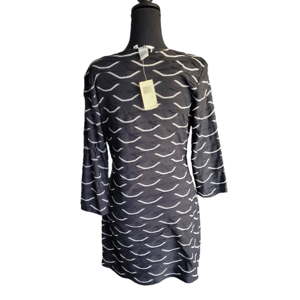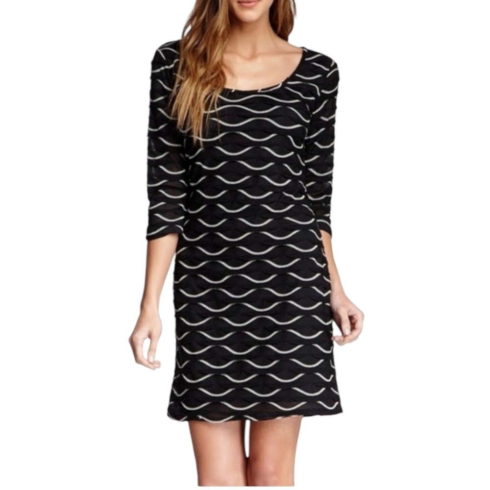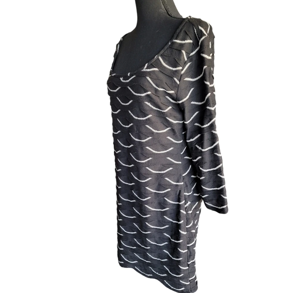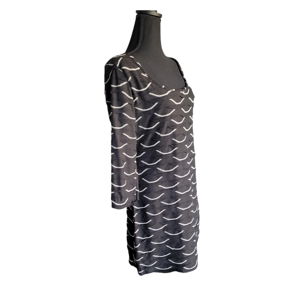Description & Condition: Max Studio body-con mini featuring a textured, scallop shaped fabric. Pullover. sco0p neck and 3/4 fitted sleeves. Fabric: exterior is 100% polyester; fully lined in 65% polyester and 35% rayon Cleaning Instructions: hand wash or dry clean only Size: Medium Approximate measurement from top to bottom of garment: 33" Width across chest approximate measurement: 18" *****Max Studio specific sizing located in pics Lovely Day Resale is happy to assist you should you have any questions. We accept offers on most of our inventory. Check out our store for other items ranging from clothing and shoes to toys and collectibles or fine china and ceramics. We have just about everything. If you like what you see click on the little heart to follow us and receive exclusive subscriber discounts and updates. As a trusted Top Seller you can shop our store and buy with confidence. Shipping is always FAST, flat fee and discounted when you shop Lovely Day Resale. We ship within 1 day with the exception of purchases made on a Saturday or Sunday. In the event there is an overage of at least $1.00 on the shipping paid you will receive a partial refund upon the processing of your order. ***Shipping discount does not apply to orders for glass, china or ceramics. Thanks for stopping by! We hope to welcome you as a customer! She'll 100 poly 65 poly 35 rayon lining 33/18