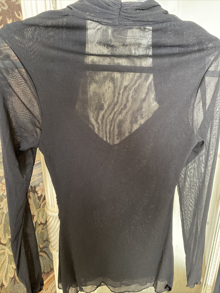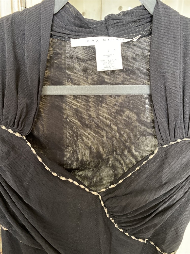 Max Studio black nylon overlay top sweetheart neck long sleeves Sheer SZ M Pristine condition. Trendy.