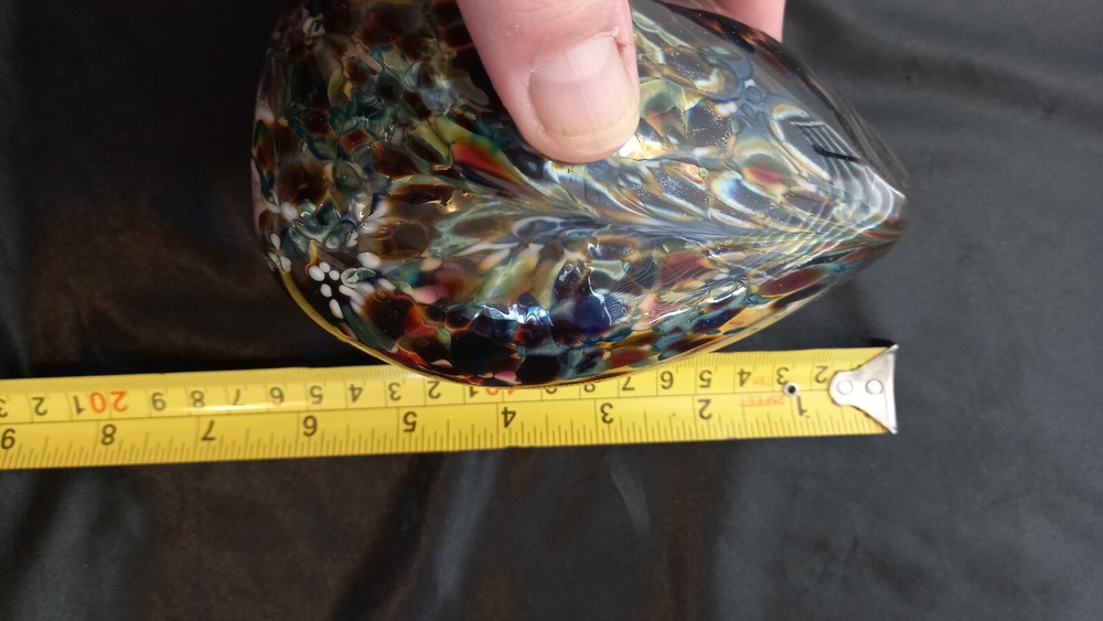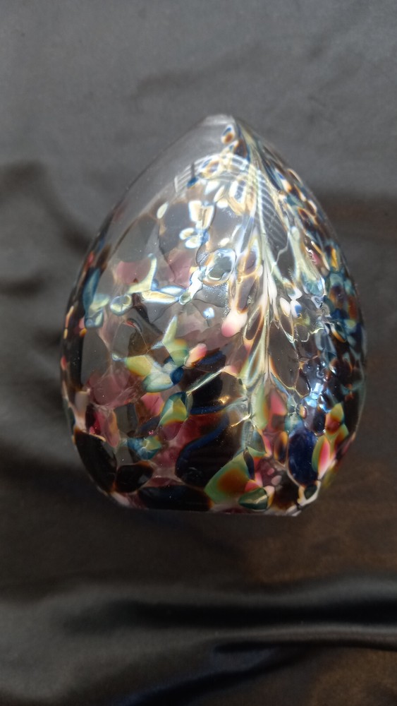 Greening Things Maytum Studio Art Glass Large 5.5" Egg Paperweight - Nice Swirl Colors! Description This is signed on the bottom, just couldn't get a good picture to show it. Explore the exquisite craftsmanship of Maytum Studio with this artisanal 5.5" tall art glass egg paperweight. The captivating swirl patterns and vibrant multicolor design make it a stunning addition to any collection or desk, providing both a touch of elegance and a functional purpose. Each piece is uniquely handmade, ensuring no two creations are exactly the same, making it a special treasure for any glass art enthusiast or Maytum Studio admirer. Its substantial size and eye-catching colors will effortlessly command attention and spark conversation. Shipping I will only ship USPS to Paypal verified addresses in the lower 48 states and other locations will be those included in Ebay's Global Shipping Program. Worldwide shipping not through the Global Shipping Program will be calculated and invoiced. Please email me with any questions you have. Payments are expected within 3 days . I ship every business day in the evening. Misc Due to inconsistencies with lighting and digital cameras, the item's colors may vary slightly from the picture. Please look carefully at the pictures and verify the correct size, etc. Pictures are part of my description so please look carefully to ensure this item fits your needs. PrettyBordersPlus free Template Maker by ISDN*tek
