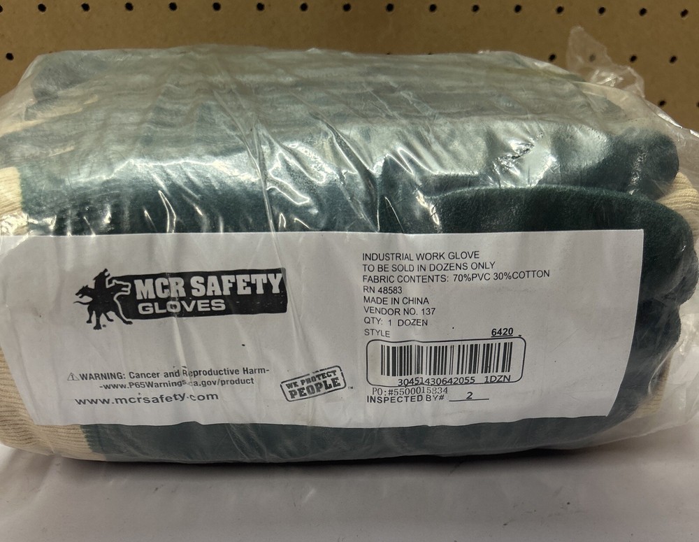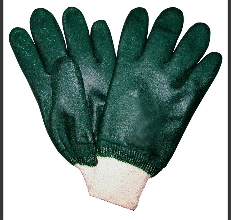 Each sale is for 12 pairs Item Attributes Department: Work Gloves Brand: MCR Safety Type: Rubber Gloves Style: Chemical Resistant Style: Coated Palms Style: Knit Wrist Style: PVC Color: Green Size: La...