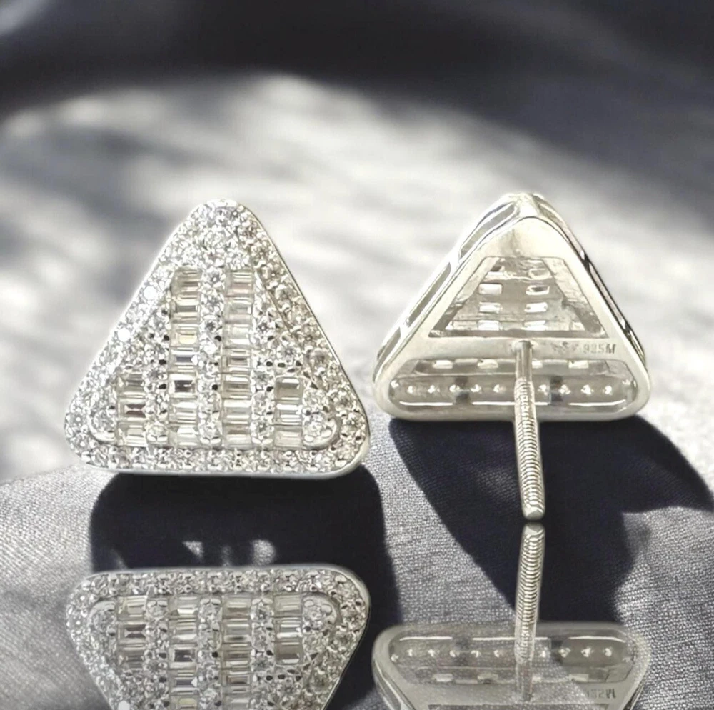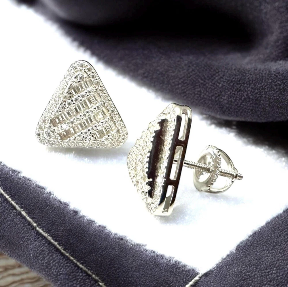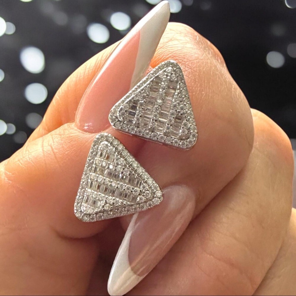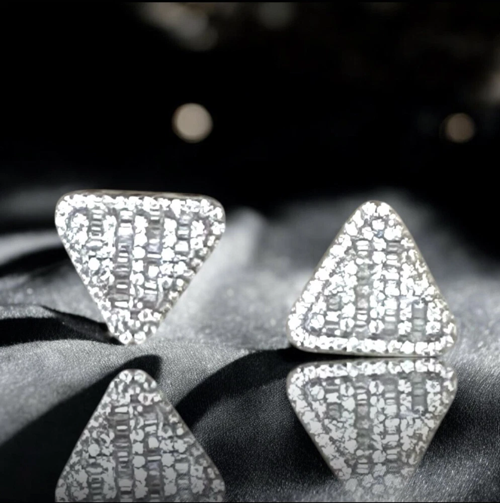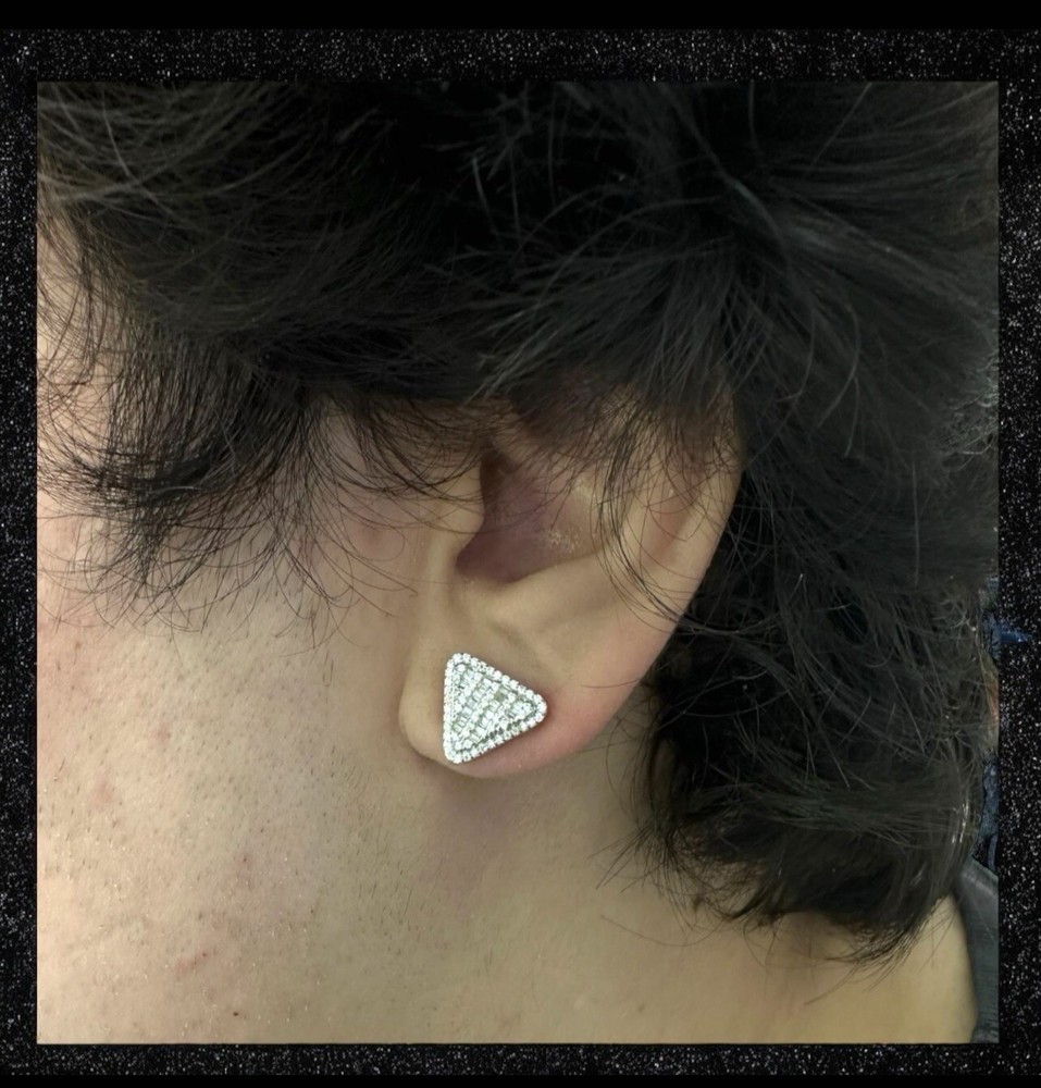 ✨ Unleash the Bling! ✨ Turn heads and make a bold statement with these 925 Sterling Silver Iced Out Triangle Moissanite Stud Earrings! Packed with 1.01 carats of jaw-dropping VVS Moissanite stones, these studs are designed for those who live to shine. Perfect for men and women who crave a luxurious, hip hop-inspired look, these earrings blend timeless craftsmanship with bold, modern design, ensuring you’ll stand out wherever you go. ————————————————————————- 🔹 Key Features: • Genuine 925 Sterling Silver – Stamped for authenticity and crafted to last. • Hypoallergenic Design – Safe and comfortable for sensitive skin. • 1.01ctw VVS Moissanite – Radiant stones with diamond-like brilliance that light up any room. • Iced Out Hip Hop Design – Bold triangle shape with intricate pave and baguette settings for standout bling. • 12.5mm Size – The ideal size to make a bold statement while remaining sleek and versatile for everyday wear. • Passes Diamond Tester – Enjoy all the sparkle of diamonds without the high price. • Secure Screwback Closure – Comfortable for all-day wear, no matter where you go. • Unisex Appeal – Stylishly designed for both men and women who love to shine. —————————————————————————— ✨ Shine Bright, Sparkle Bold ✨ 🎁 These earrings are the perfect gift for any occasion—Birthdays, Christmas, New Year’s Eve, Valentine’s Day, Mother’s Day, Father’s Day, Graduation, Engagements, Weddings, Anniversaries, or Sweet 16 celebrations. 📦 Shipping Perks: • FREE Shipping on Every Order • Fast, Reliable Delivery – Ships same or next day! Why follow trends when you can set them? Grab your pair of iced-out Moissanite triangle studs today and take your style to the next level! —————————————————————————— #TriangleCut #MoissaniteStuds #SterlingSilver #QualityCraftsmanship #DiamondTesterApproved Please Message Me With Any Questions You May Have... ❤️ Thank You For Visiting KjewlOnline ❤️
