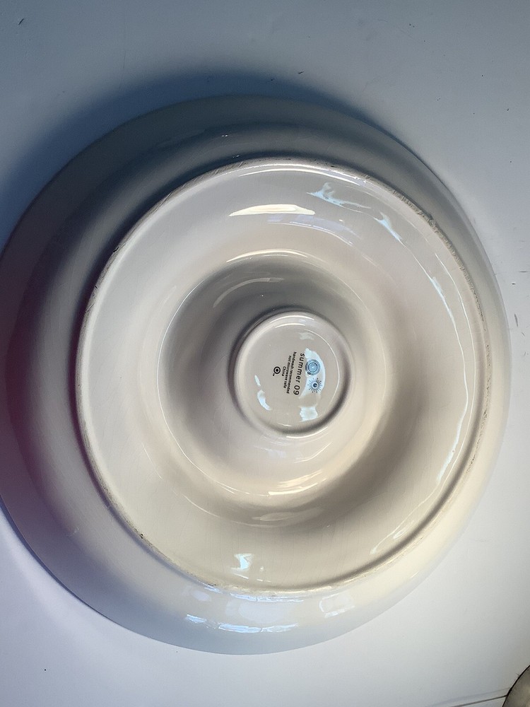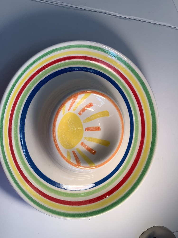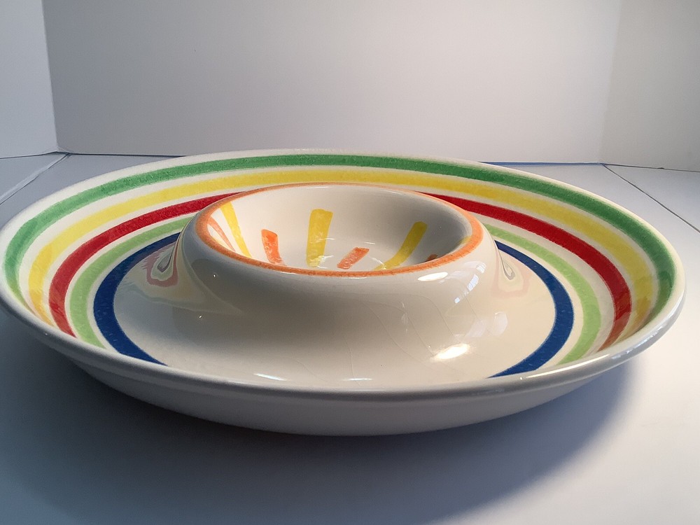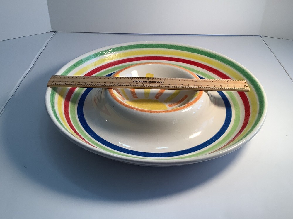Ceramic colorful primary color stripes/sunshine center chips/dip serving platter...