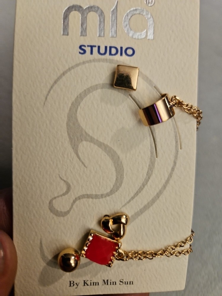 Elevate your accessory game with the Mia Studio Red Stone Stud Earring with Ear Cuff and three additional Studs. The set features a striking red stone at the center of each earring, embraced by a sleek metal cuff that adds a touch of sophistication to any look. The cuff design offers a versatile fit for both cartilage and lobe, ensuring a secure and comfortable wear. With a bullet push back closure, these earrings are designed for ease and durability. Whether you're dressing up for a special occasion or accenting your everyday style, this earring set from MIA brings a blend of beauty and contemporary fashion to your jewelry collection.