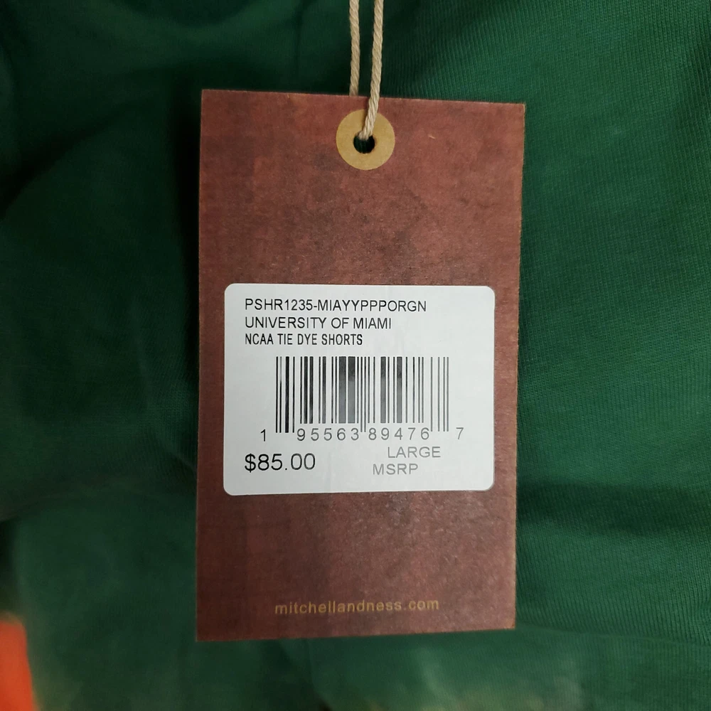 Miami Hurricanes NCAA Mitchell & Ness Shorts L Large Green Orange Tie Dye Cotton NWT Very good, new condition with tags. Never Worn. Please see photos for details and let me know if you have any quest...